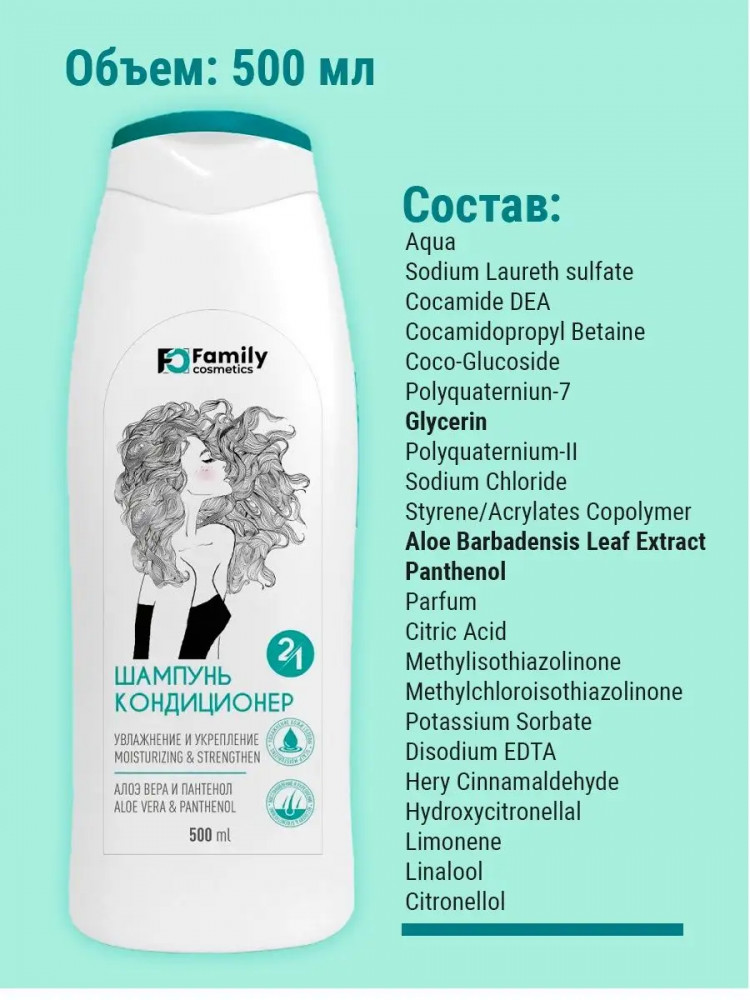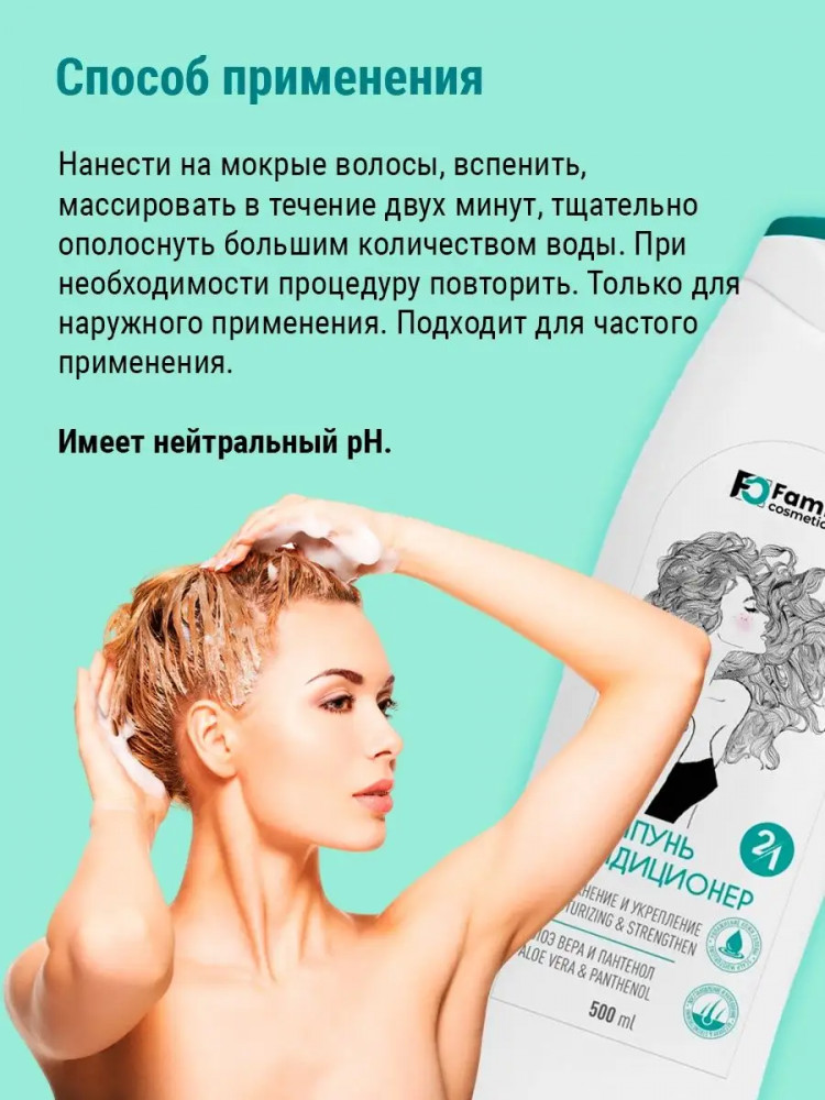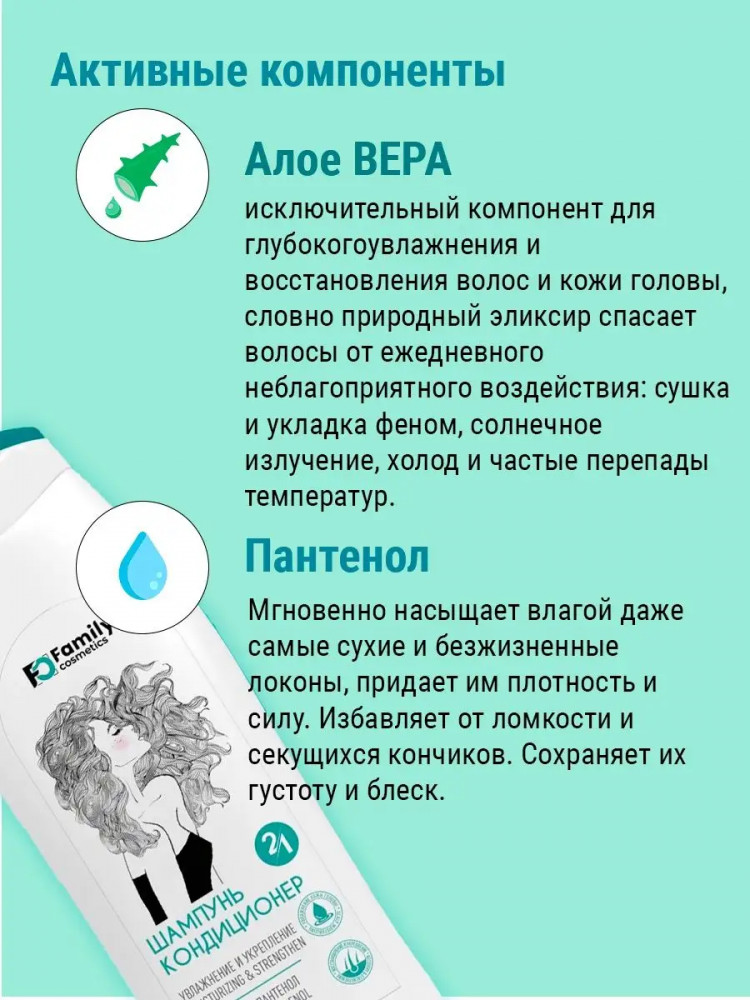 Family cosmetics Шампунь-кондиционер для всех типов волос «Увлажнение и укрепление»