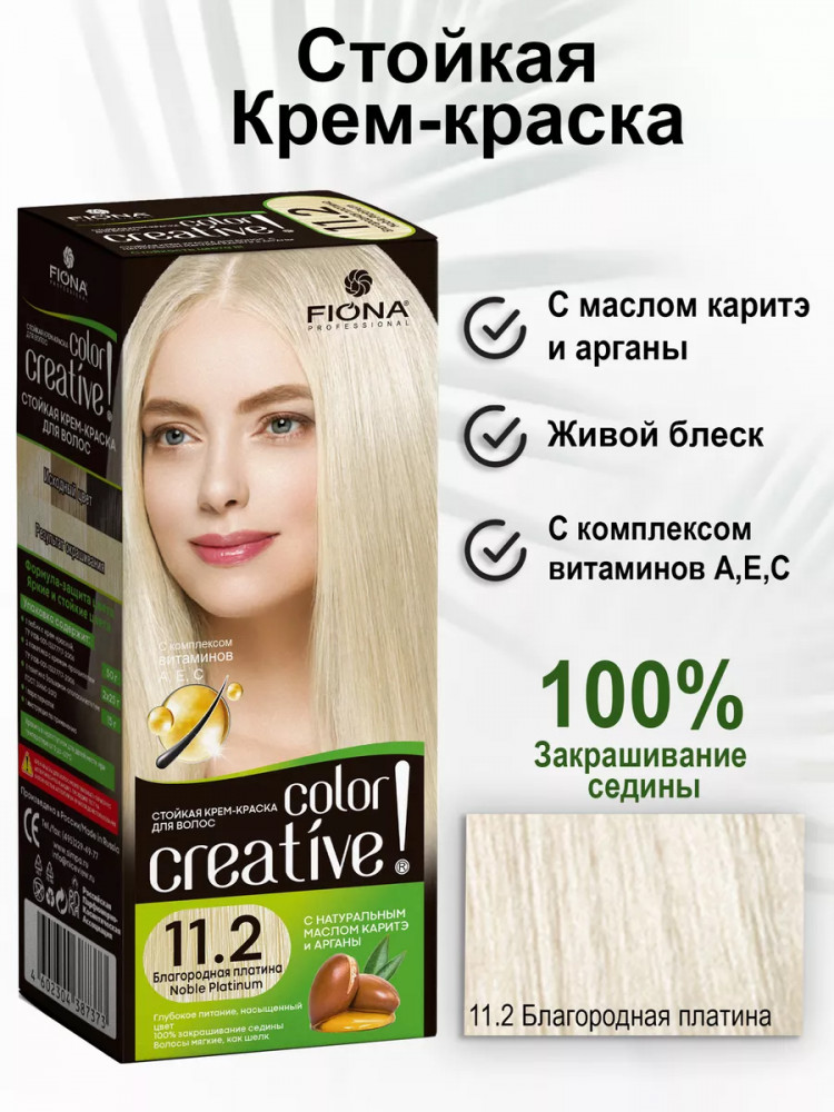 Fiona Стойкая крем-краска для волос «Creative color», оттенок 11.2 Благородная платина