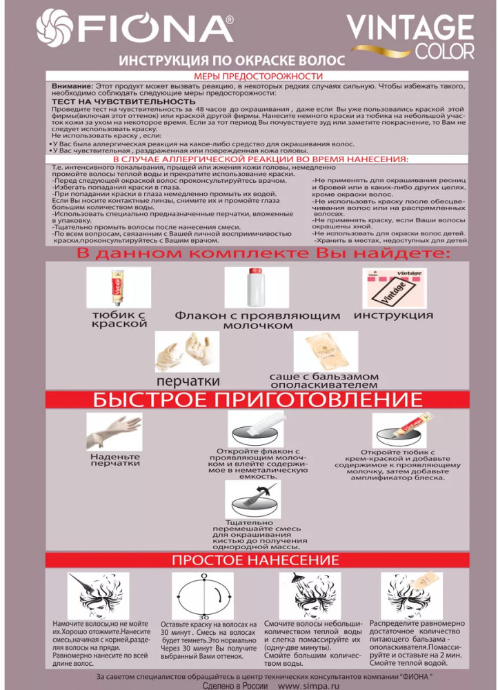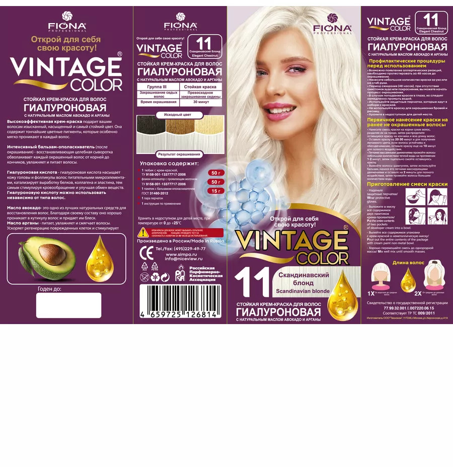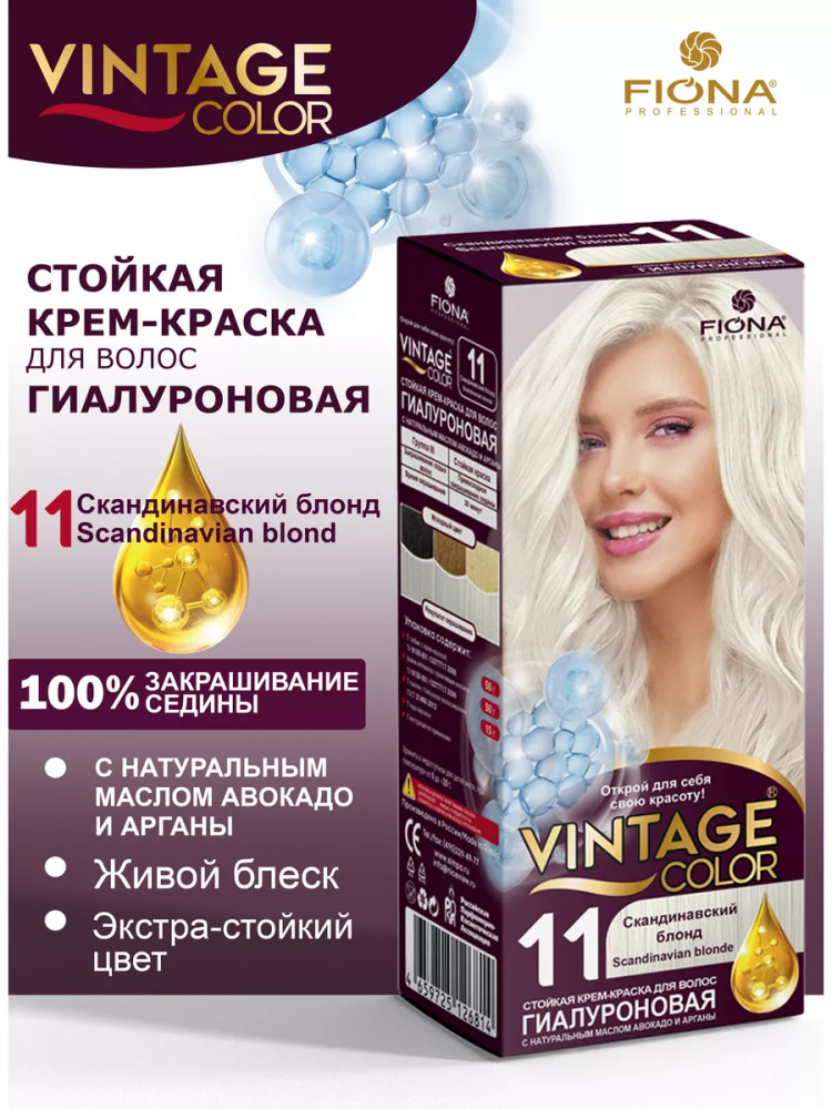 • благодаря кремообразной текстуре краска для волос Винтаж проста в применении и не стекает во время окрашивания, хорошо распределяется по всей длине волос.