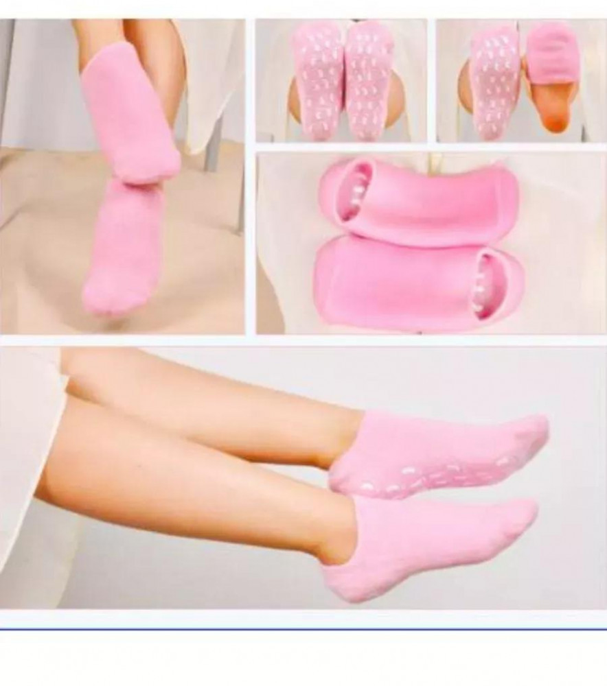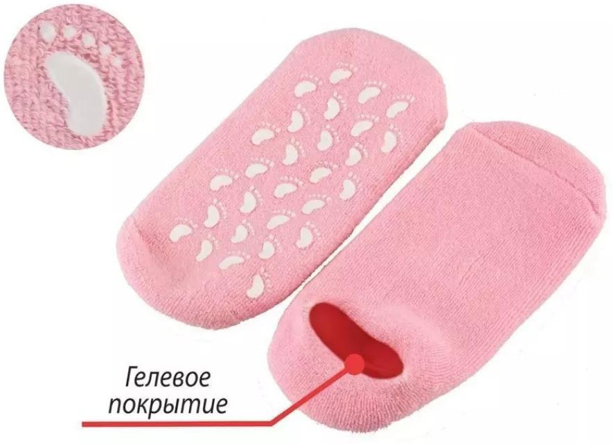 Совет: для усиления эффекта применяйте одновременно с кремами для ног, вечером наносите обильно любой крем для ног и наденьте силиконовые носки. Оставьте носки на ночь (не более 12-14 часов). С 23 часов до 1 часа ночи наша кожа обильно обновляется. Силикон удержит влагу внутри, даст впитаться всем полезным веществам крема по всей поверхности — от пятки до пальчиков. Размер универсальный 23×10 см.