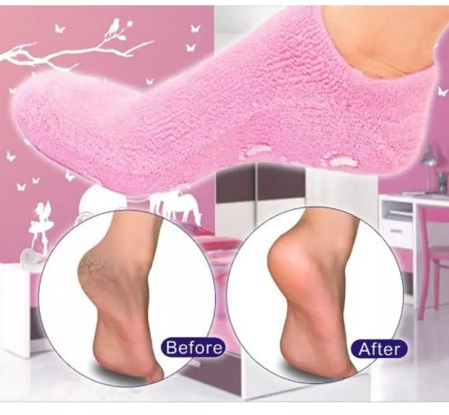 Увлажняющие силиконовые носочки на натуральной гелиевой основе эффективно увлажняют кожу стоп, помогая справиться с сухостью кожи стоп, шелушением и трещинами на пятках. Ваши ножки будут гладкими, ухоженными и здоровыми, благодаря этим глицериновым носкам. Супер средство для идеально гладких пяток!