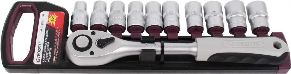 Thorvik Набор головок торцевых с трещоточной рукояткой 1/2"DR 10-19 мм+126