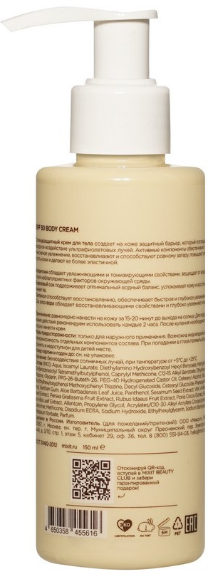 Mixit Крем для тела сонцезащитный с пантенолом и алоэ «Back to Sun», SPF 50