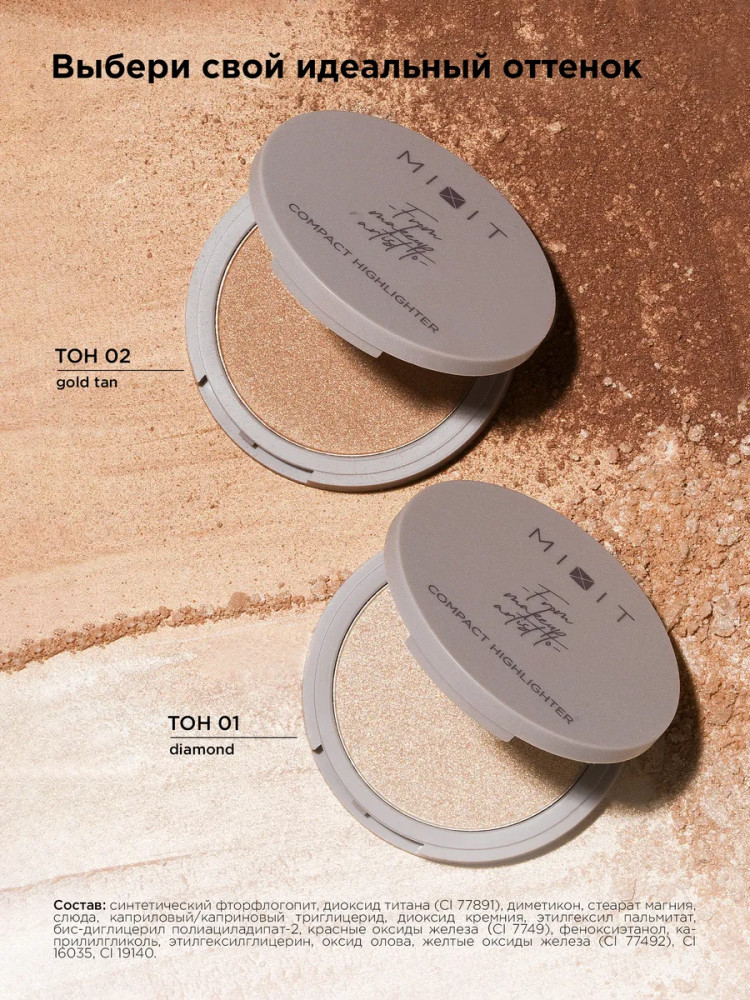 Mixit Хайлайтер для лица компактный хайлайтер «Сompact Highlighter», оттенок 02 Gold tan