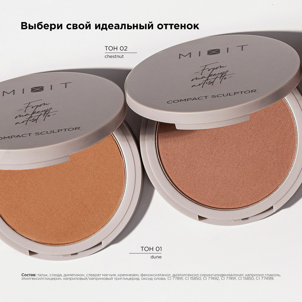Mixit Скульптор для лица сухой компактный «Сompact Sculptor», оттенок 02 Сhestnut