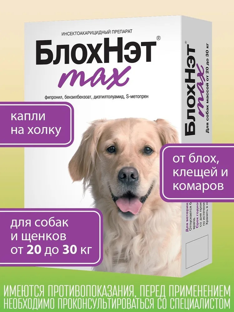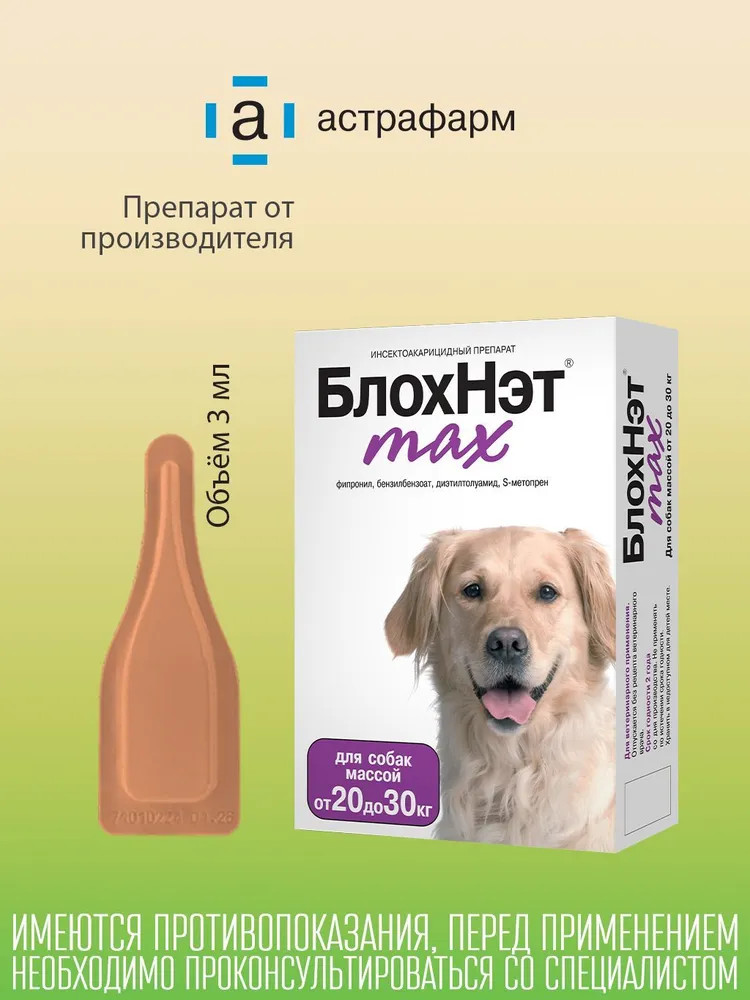 Астрафарм Капли для собак от всех видов внешних паразитов «Блохнэт max» (20-30 кг, 1 пипетка)-20%