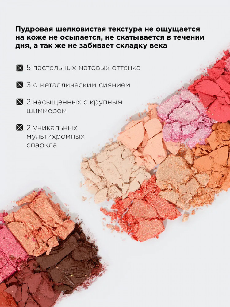 Оттенки Lily, Sultry Chick: синтетический фторфлогопит, диметикон, слюда, тальк, минеральное масло, стеарат магния, этилгексил пальмитат, феноксиэтанол, диметикон/винилдиметикон кроссполимер, гидрогенизированный стирол/изопреновый сополимер, каприлил гликоль, этилгексилглицерин, оксид олова +/- CI 77891, CI 19140, CI 15850, CI 45410, CI 77491.