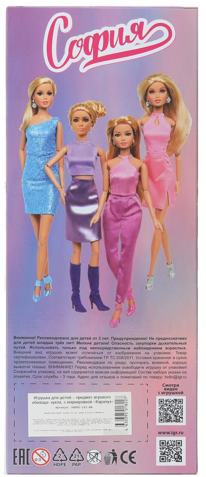 💳 Оплатить за товар можно при получении 🇰🇿 Есть бесплатная доставка по Казахстану от 1 дня 🎁 Копите бонусы с каждой покупки Серия: София и Алекс Кукла «София» ТМ «Карапуз» станет прекрасным подарком для девочки. Очаровательная София одета в фиолетовую атласную юбку и топ сиреневого цвета, на ногах — длинные сапожки. Образ дополняют оригинальные серьги. Одежду и аксессуары легко снять и надеть. С такой модной куклой девочке будет интересно и весело играть: благодаря тому, что руки и ноги куклы подвижны, им можно придать любое положение. У Софии длинные красивые волосы, которые хозяйка куклы сможет заплетать в разные причёски. Детально проработанный дизайн игрушки вдохновит девочку на множество увлекательных игровых сюжетов. |