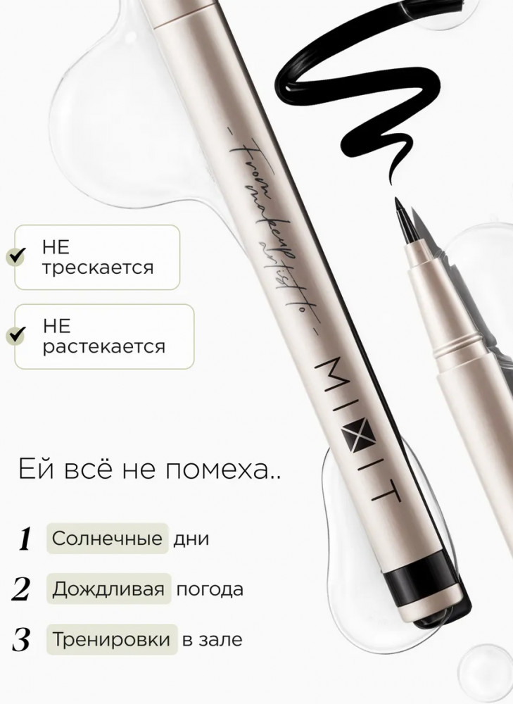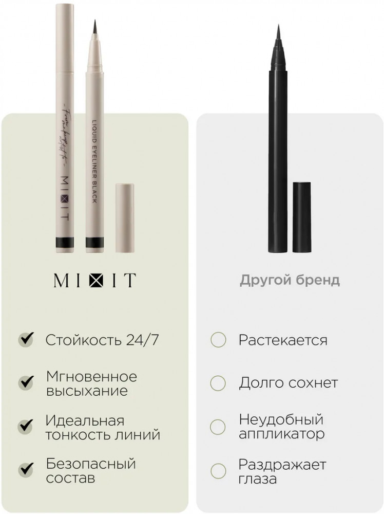 Mixit Подводка-лайнер для глаз тонкая стойкая «Liquid Eyeliner», оттенок Черный