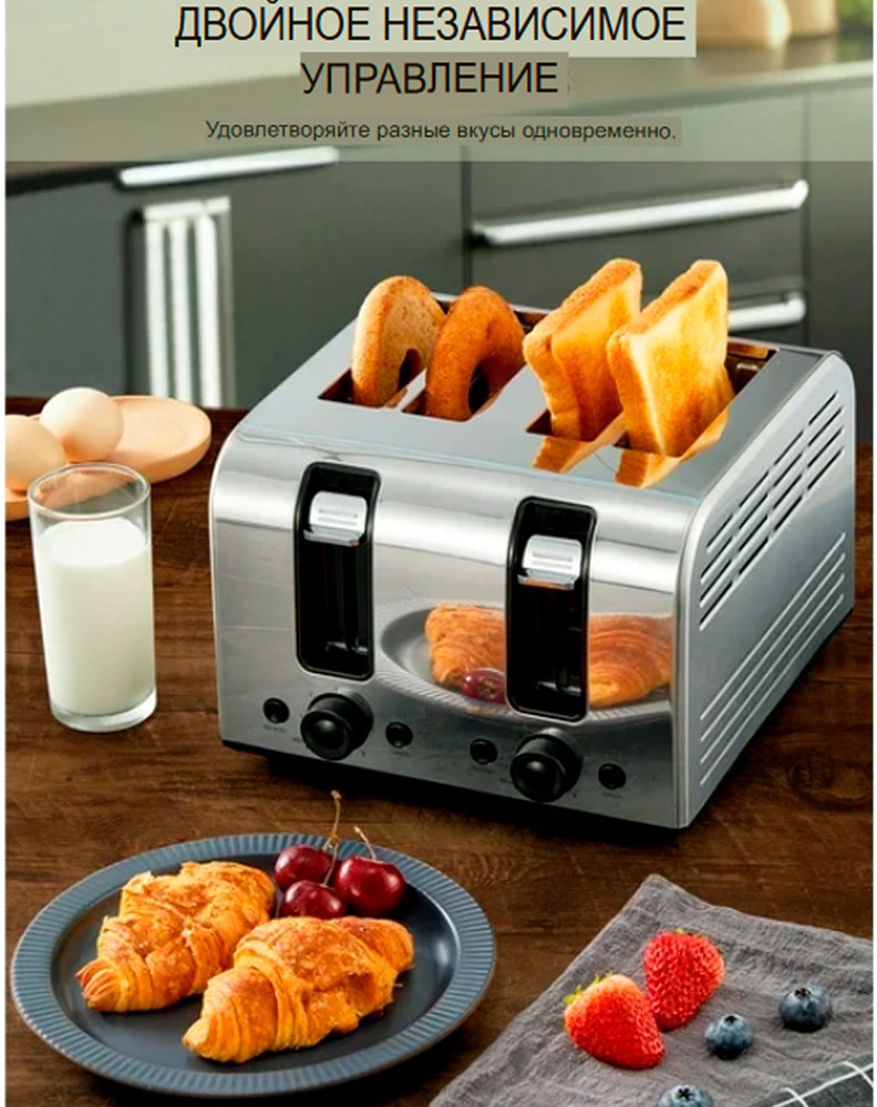 • 1,5-дюймовые (3,8 см) очень широкие слоты — подходят для хлеба, выпечки, вафель и бубликов;