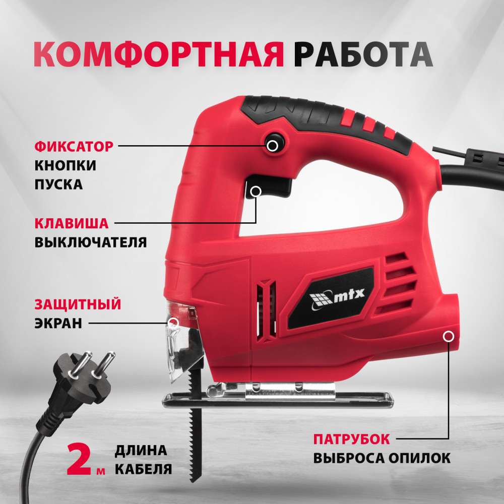 💳 Оплатить за товар можно при получении 🇰🇿 Есть бесплатная доставка по Казахстану от 1 дня 🎁 Копите бонусы с каждой покупки Лобзик электрический MTX MJS-55 27181 мощностью 400 Вт предназначен для прямого и фигурного реза заготовок из металла (максимальная глубина пропила 6 мм), древесины (до 55 мм), пластика и других материалов. Пилка совершает 3000 ходов в минуту на холостом ходу, величина хода составляет 18 мм, что обеспечивает высокую производительность инструмента. Угол наклона подошвы регулируется, что позволяет совершать пропилы под углом до 45°. |