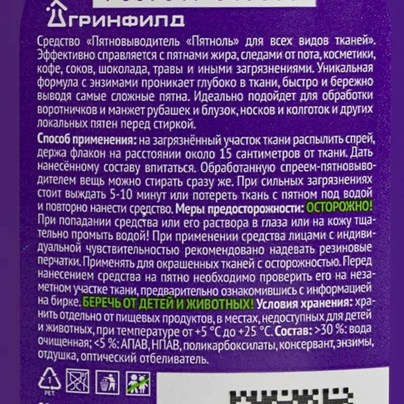 Средство пятновыводное для всех видов тканей. Эффективно справляется с пятнами жира, следами от пота, косметики, кофе, соков, шоколада, травы и иными загрязнениями. Уникальная формула с энзимами проникает глубоко в ткани, быстро и бережно выводя самые сложные пятна. Идеально подойдет для обработки воротничков и манжет рубашек и блузок, носков и колготок и других локальных пятен перед стиркой.