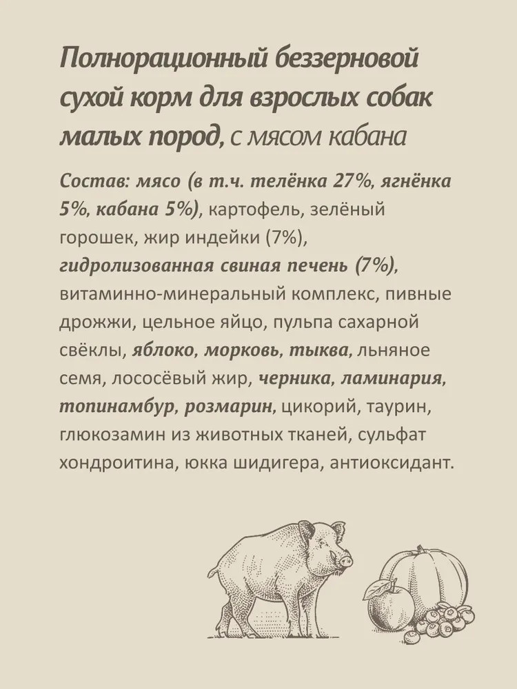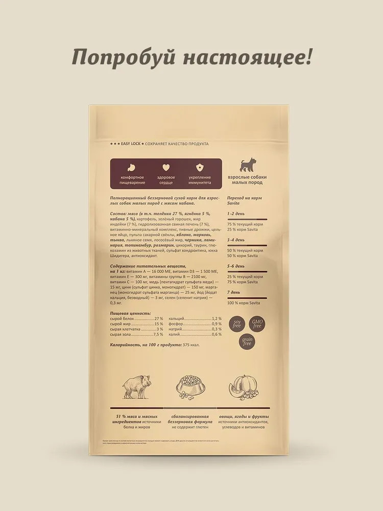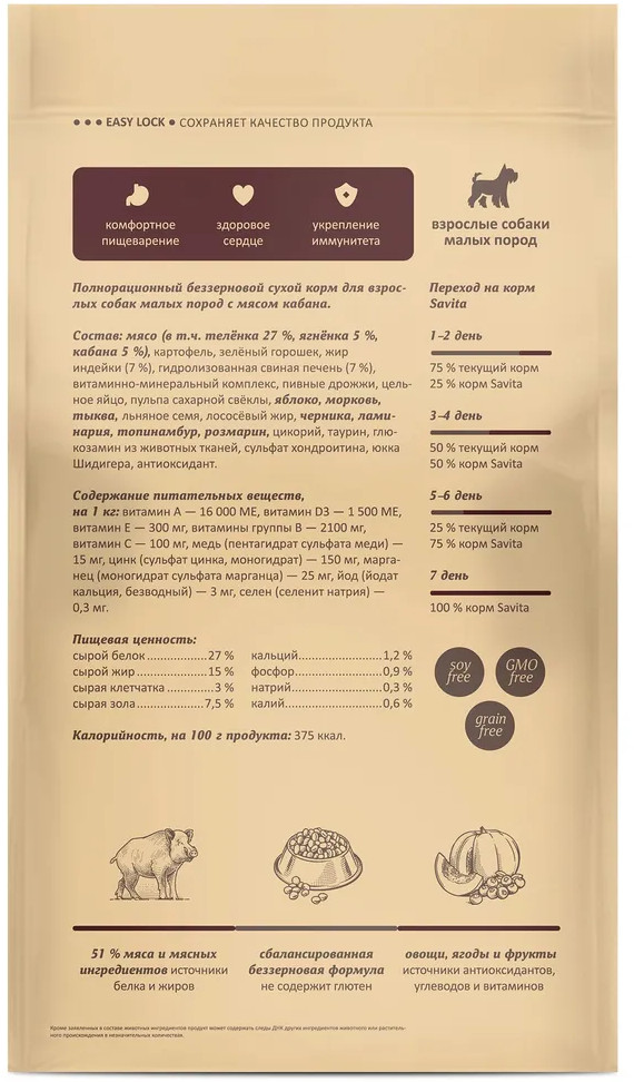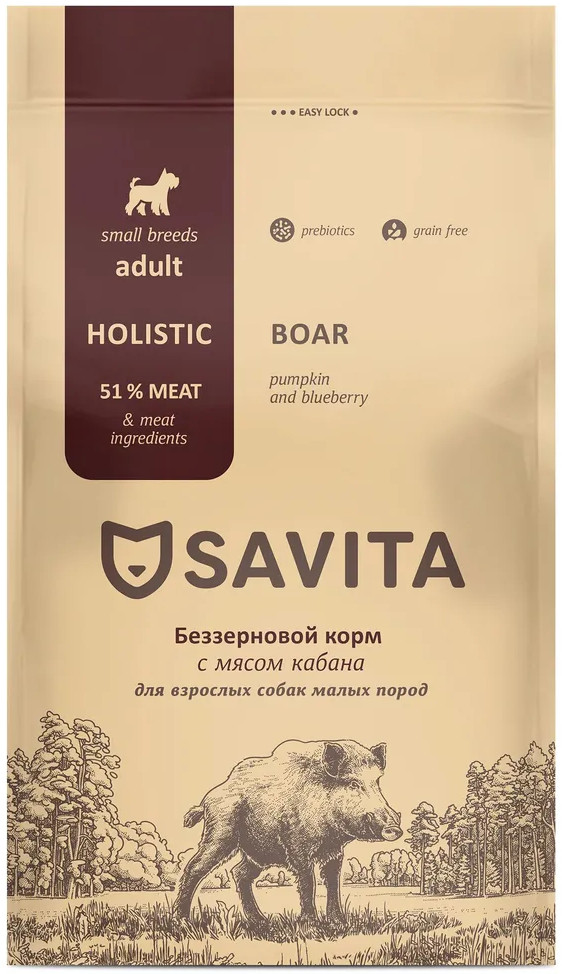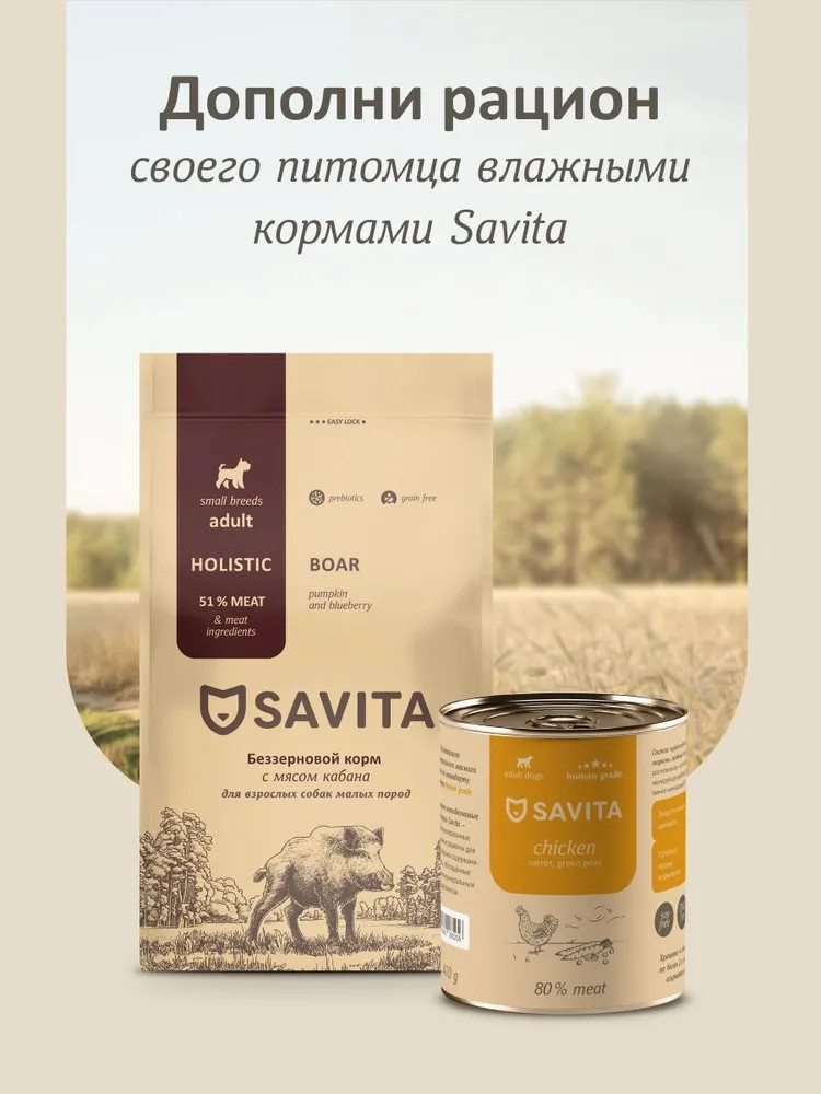 Savita Корм для собак малых пород беззерновой с мясом кабана