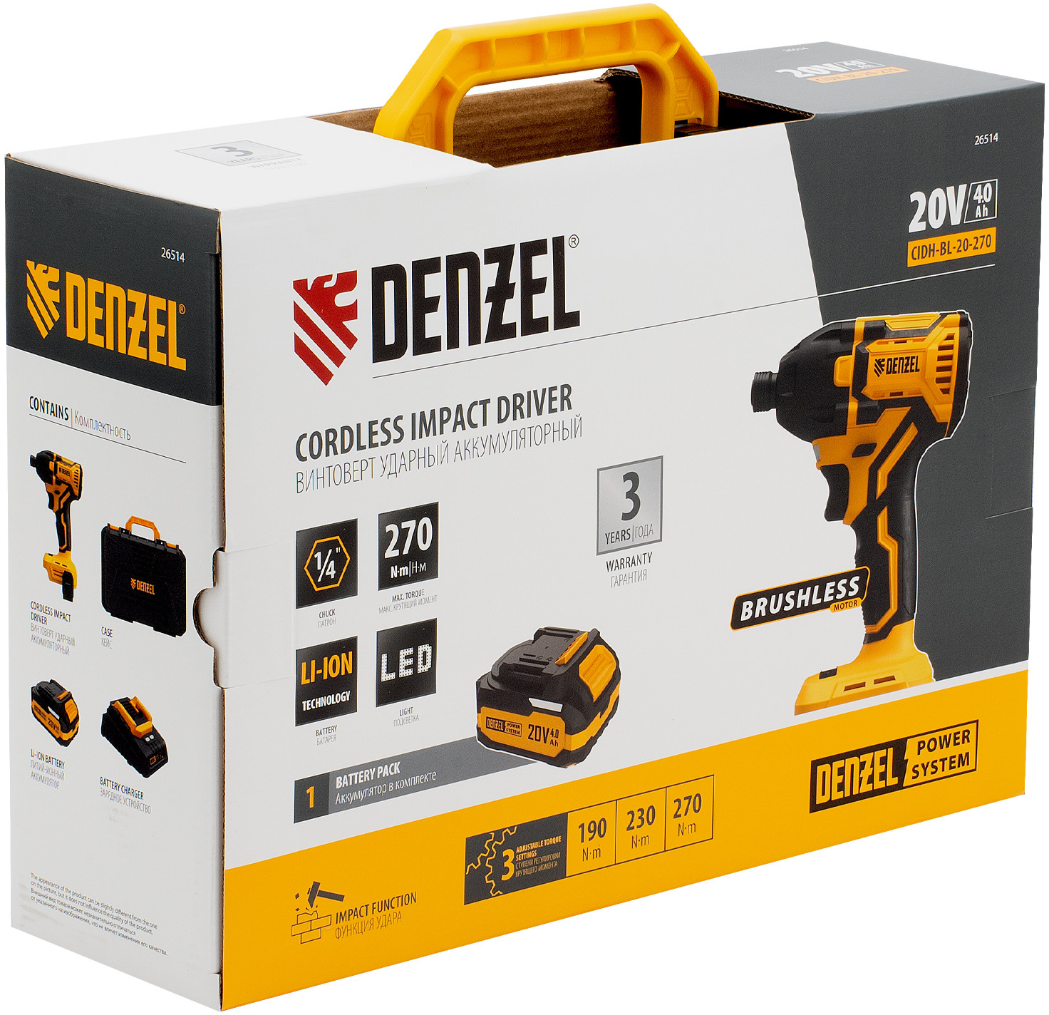 Denzel Винтоверт ударный аккумуляторный CIDH-BL-20-270-20% +1392