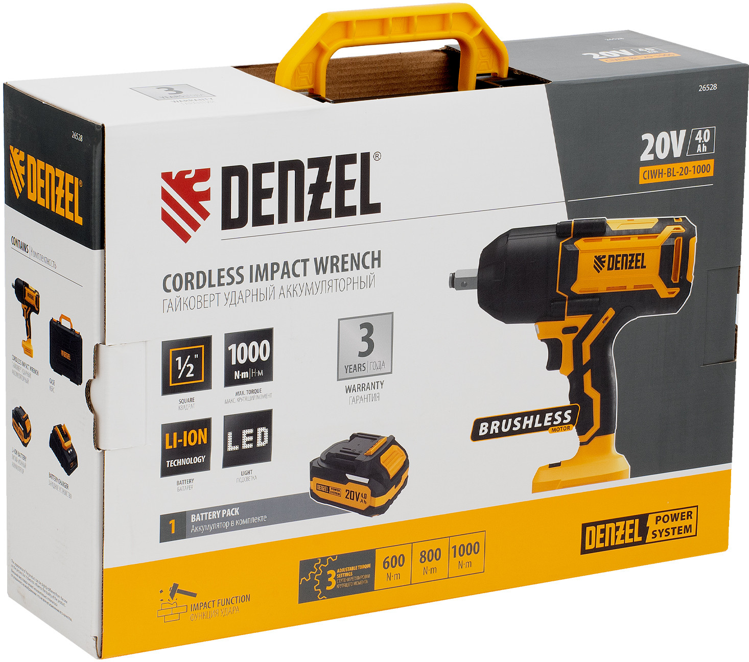 Denzel Гайковерт ударный аккумуляторный CIWH-BL-20-1000-20% +1039