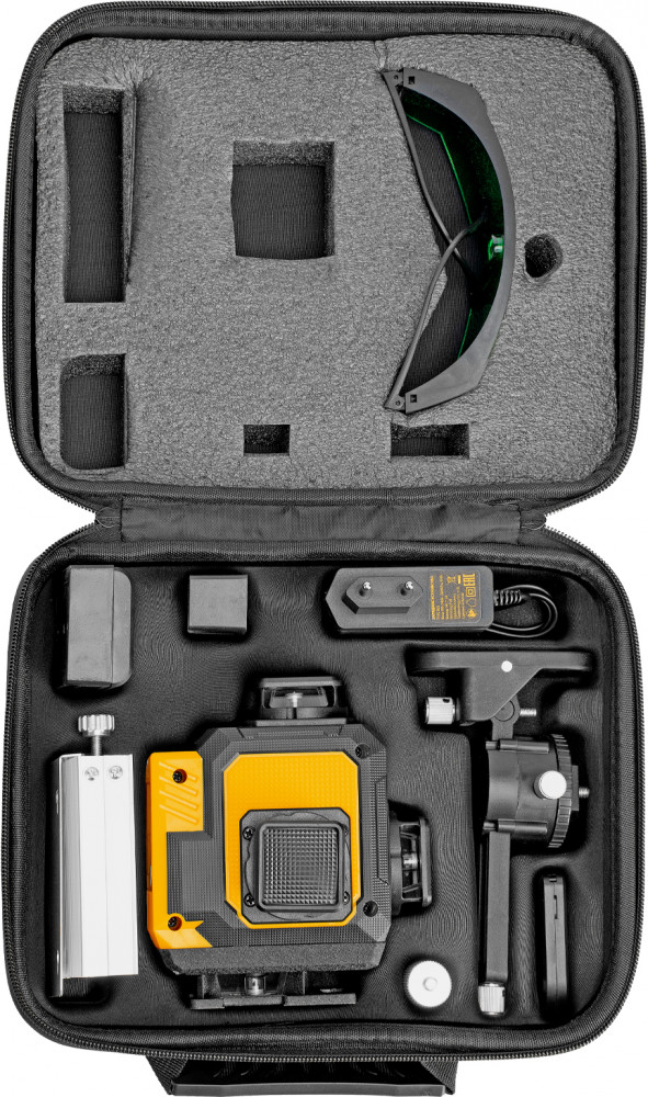 💳 Оплатить за товар можно при получении 🇰🇿 Есть бесплатная доставка по Казахстану от 1 дня 🎁 Копите бонусы с каждой покупки Мультипризменный лазерный уровень Denzel DLV-360-4C 35081 поставляется в кейсе, работает от аккумулятора Li-Ion емкостью 2,4 А·ч и проецирует 2 горизонтальные и 2 вертикальные линии на расстояние до 30 м при помощи зеленых лучей длиной 520 нм. С его помощью можно нанести разметку и выровнять предметы относительно друг друга и земли с точностью до 0,3 мм/м. Угол развертки составляет 360°, что повышает удобство и эффективность работы. Прибор незаменим во время проведения строительных, ремонтных, отделочных работ, обустройства интерьера. |