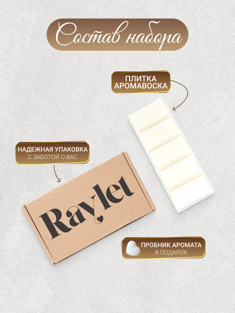 Raylet — это бренд, который создаёт ароматизаторы для дома нового поколения. Мы не просто выпускаем воск — мы дарим настроение, атмосферу и комфорт. Каждая плитка создана вручную с любовью и заботой.