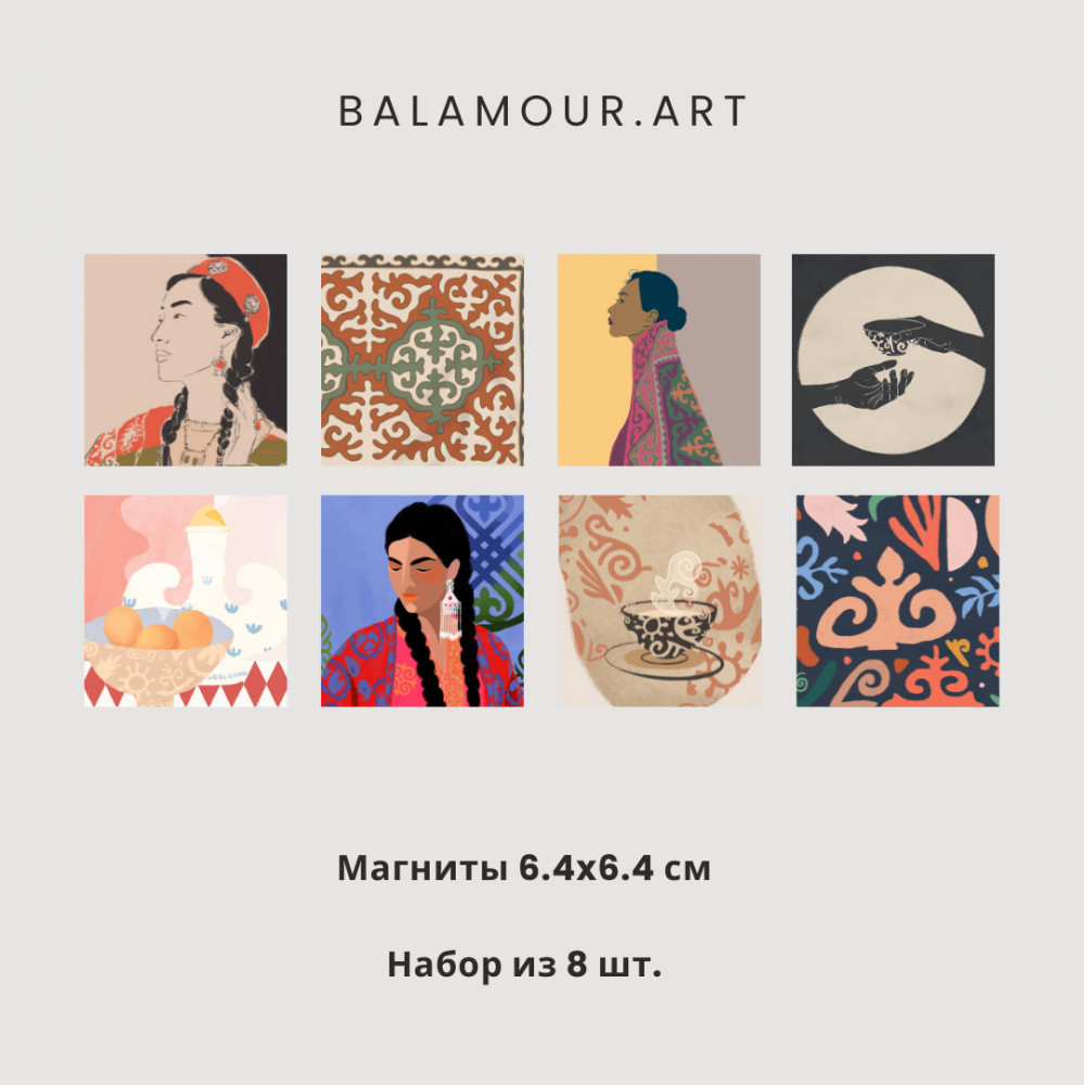 💳 Оплатить за товар можно при получении 🇰🇿 Есть бесплатная доставка по Казахстану 🎁 Копите бонусы с каждой покупки Магнит с авторским казахским принтом — стильный и душевный сувенир, вдохновлённый культурой и традициями Казахстана. Отлично подойдет в качестве подарка, который будет напоминать о Казахстане, традициях казахского народа и культуры. Каждая иллюстрация — это оригинальная работа, в которой переплетаются древние орнаменты, образы современных казахских девушек и элементы национального быта. |