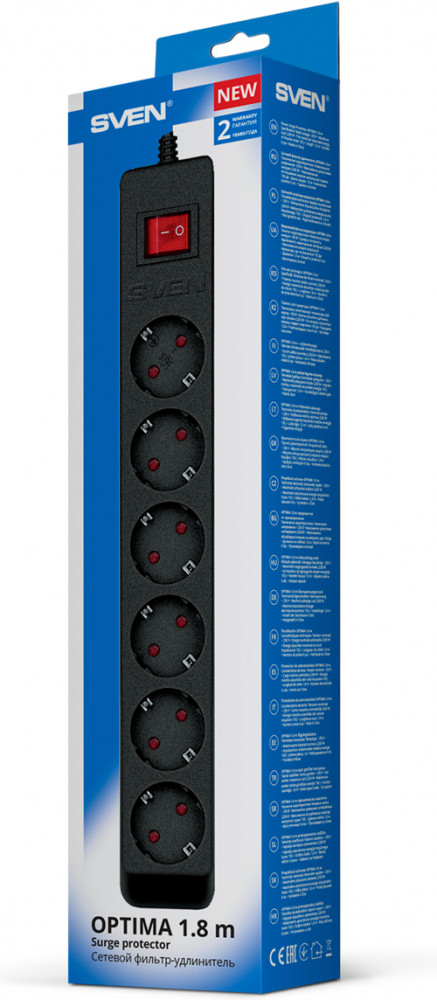Серия сетевых фильтров-удлинителей Sven Optima призвана обеспечить стабильное и качественное питание различных устройств и предполагает разнообразные сценарии размещения и применения. Шести универсальных розеток формата CEE 7/4 с заземлением хватит для решения большинства задач, при этом они отлично удерживают как российские, так и европейские вилки.