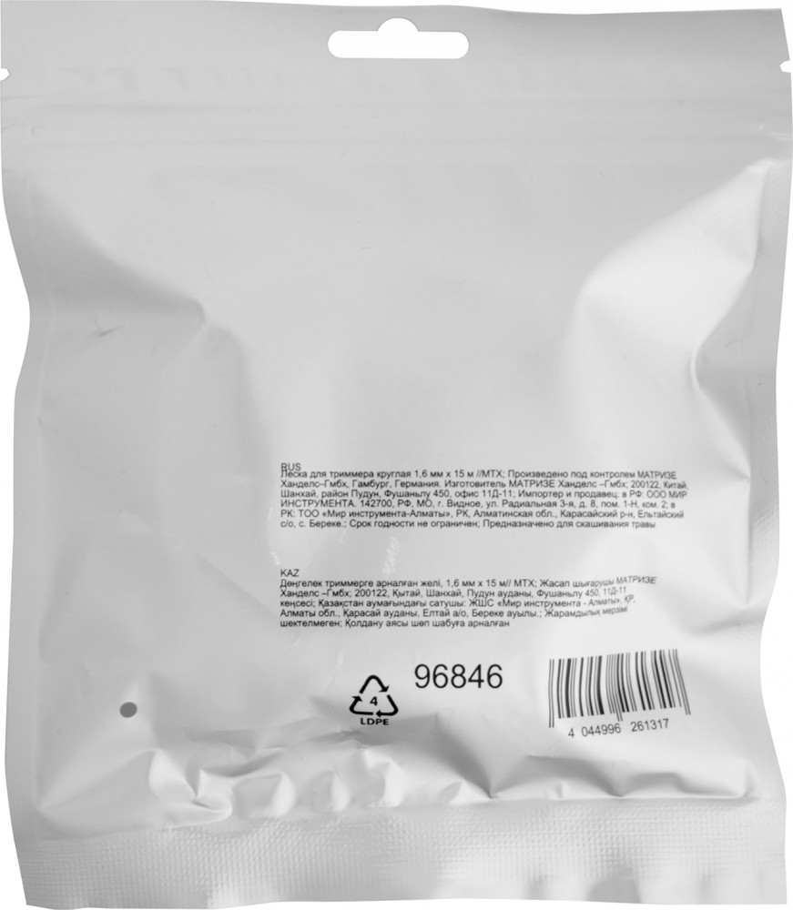 💳 Оплатить за товар можно при получении 🇰🇿 Есть бесплатная доставка по Казахстану от 1 дня 🎁 Копите бонусы с каждой покупки Леска для триммера MTX круглого сечения, диаметром 1.6 мм и длиной 15 м, предназначена для скашивания мягкой газонной травы. Совместима с электрическими триммерами мощностью 300-600 Вт. Пригодится владельцам дачных участков |