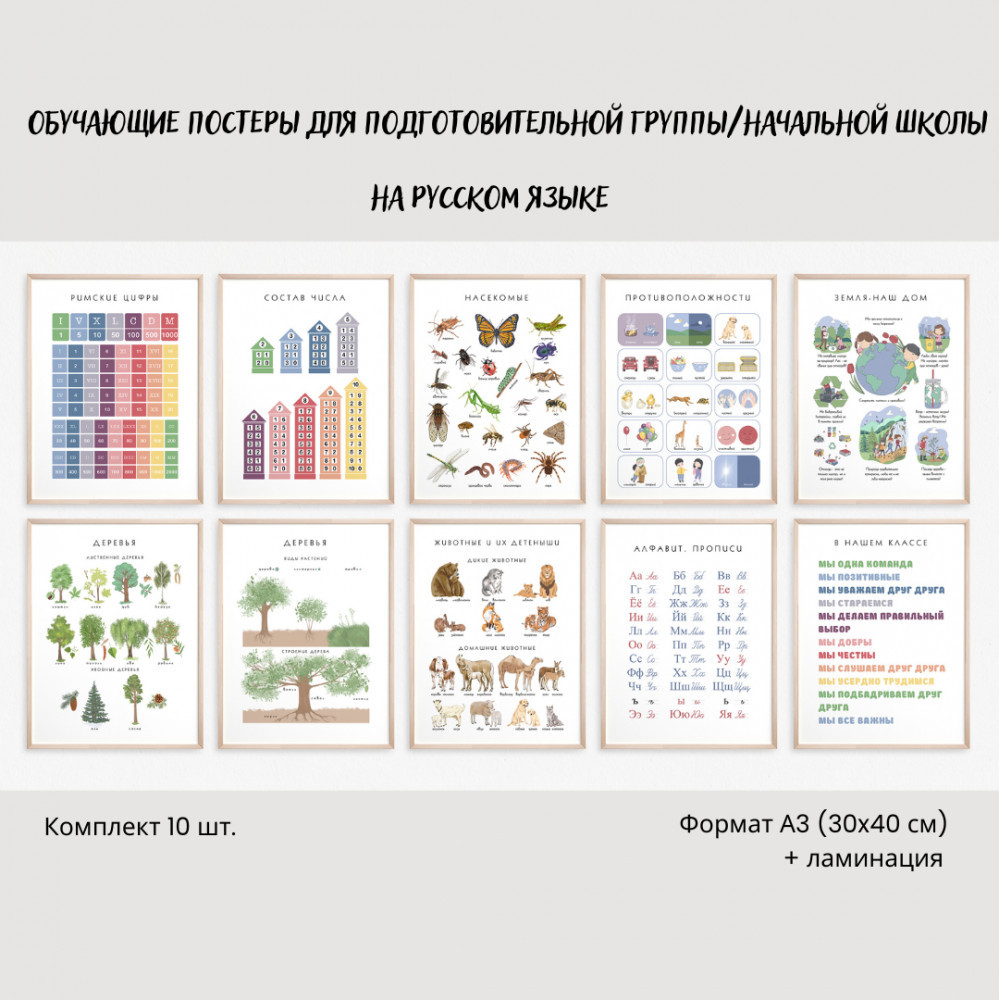 💳 Оплатить за товар можно при получении 🇰🇿 Есть бесплатная доставка по Казахстану от 1 дня 🎁 Копите бонусы с каждой покупки Набор из 10 постеров на русском языке для подготовительной группы/начальной школы формата А3 без ламинации. Обучающие постеры для детей отлично подойдут для раннего развития и помогут познакомить ребенка с такими базовыми понятиями, как римские цифры, состав числа, насекомые, противоположности, Земля — наш общий дом, деревья, растения, животные и их детеныши, прописи и постер правил в нашем классе. |
