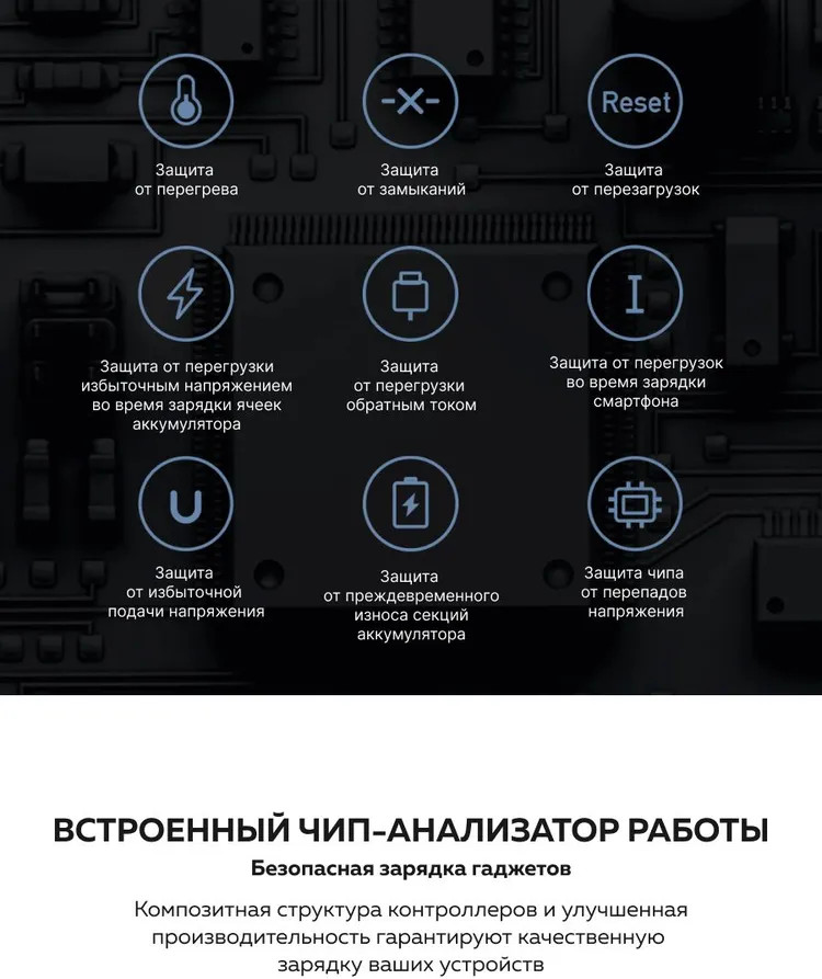 Поддерживает быструю зарядку по технологиям Huawei FastCharge, Qualcomm Quick Charge 2.0/3.0 и Samsung Adaptive Fast Charging с максимальным выходным током до 3000 мА (Type-C) и выходной мощностью 18 Вт. Выходное напряжение варьируется от 5V до 12V, что позволяет эффективно заряжать различные устройства.