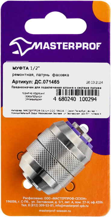 MasterProf Муфта для шланга ремонтнаяВ данный момент этот товар отсутствует в продаже. Возможно, у нас найдется аналогичный или похожий товар здесь. Соединительный элемент, используемый в системах садового, огородного полива, при подаче технической воды и обеспечении работы насосного оборудования. Соединяет два гибких шланговых окончания, удлиняя совокупный маршрут водоснабжения. Обеспечивает надежное соединение шлангов. Подходит для шлангов, имеющих внутренний диаметр 12 мм. Латунный корпус, наряду с коррозионной устойчивостью, придаёт изделию конструкционную прочность. Температура эксплуатации от +1 до +90 градусов Цельсия. |