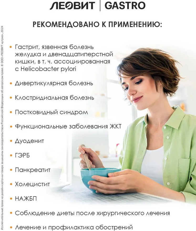 Показания в качестве диетического лечебного и профилактического питания при болезнях желудочно-кишечного тракта (ЖКТ), таких как: