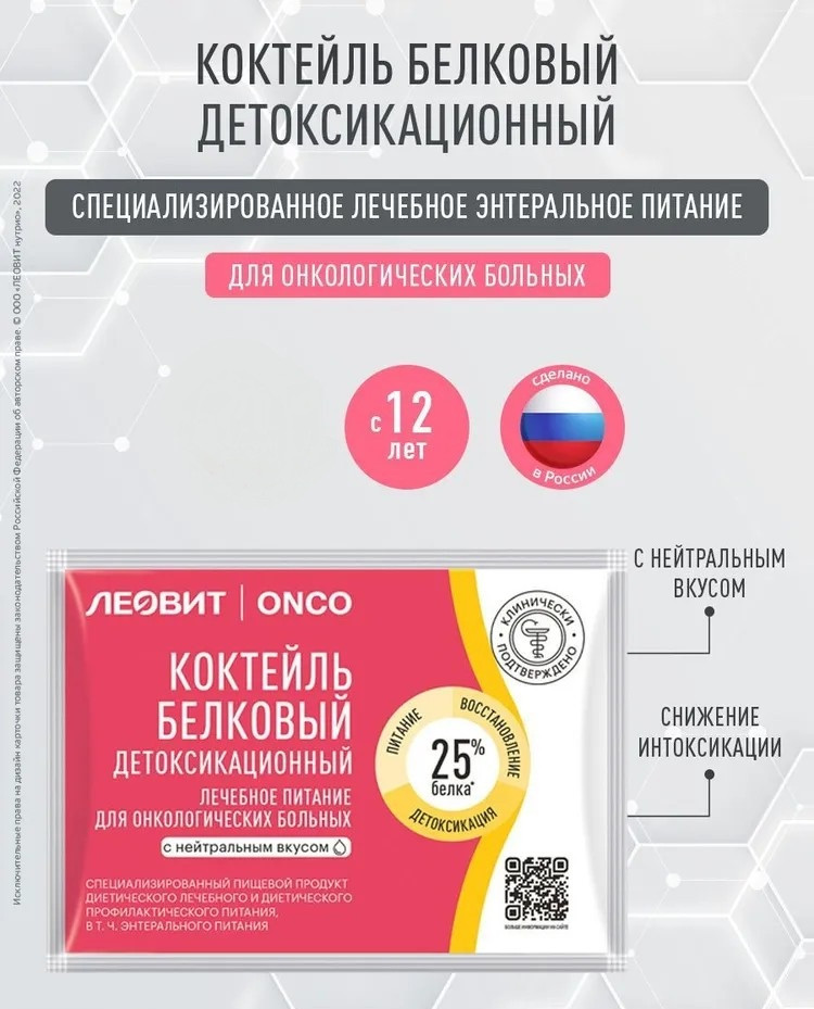 Леовит ONCO Коктейль белковый детоксикационныйВ данный момент этот товар отсутствует в продаже. Возможно, у нас найдется аналогичный или похожий товар здесь. Коктейль белковый детоксикационный — специализированный пищевой продукт диетического лечебного и профилактического питания, в т. ч. энтерального (зондового и перорального использования), для взрослых и детей старше 12 лет с высокими потребностями в белке и энергии, для снижения интоксикации и гипоксии организма, улучшения общефизического статуса в период лечения, реабилитации и ремиссии. |