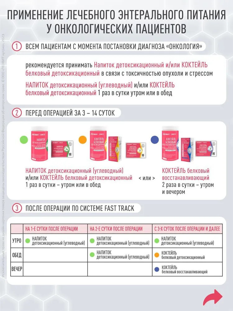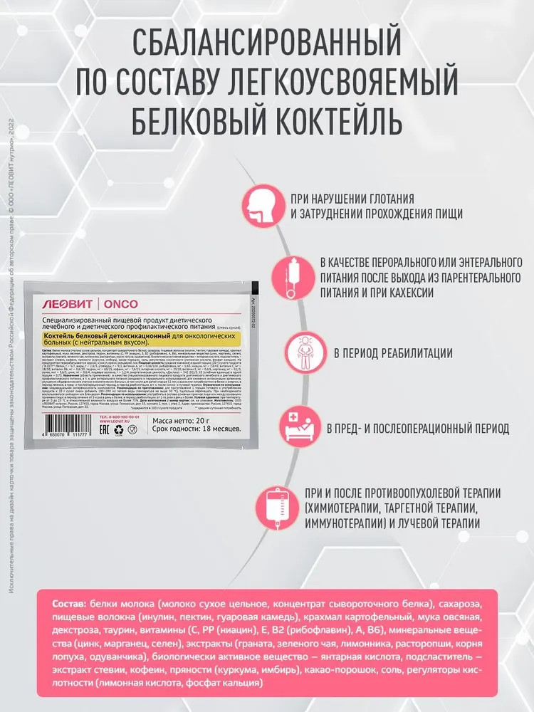 Специализированное лечебное, в том числе энтеральное, питание для онкологических больных линейки Леовит ONCO. |