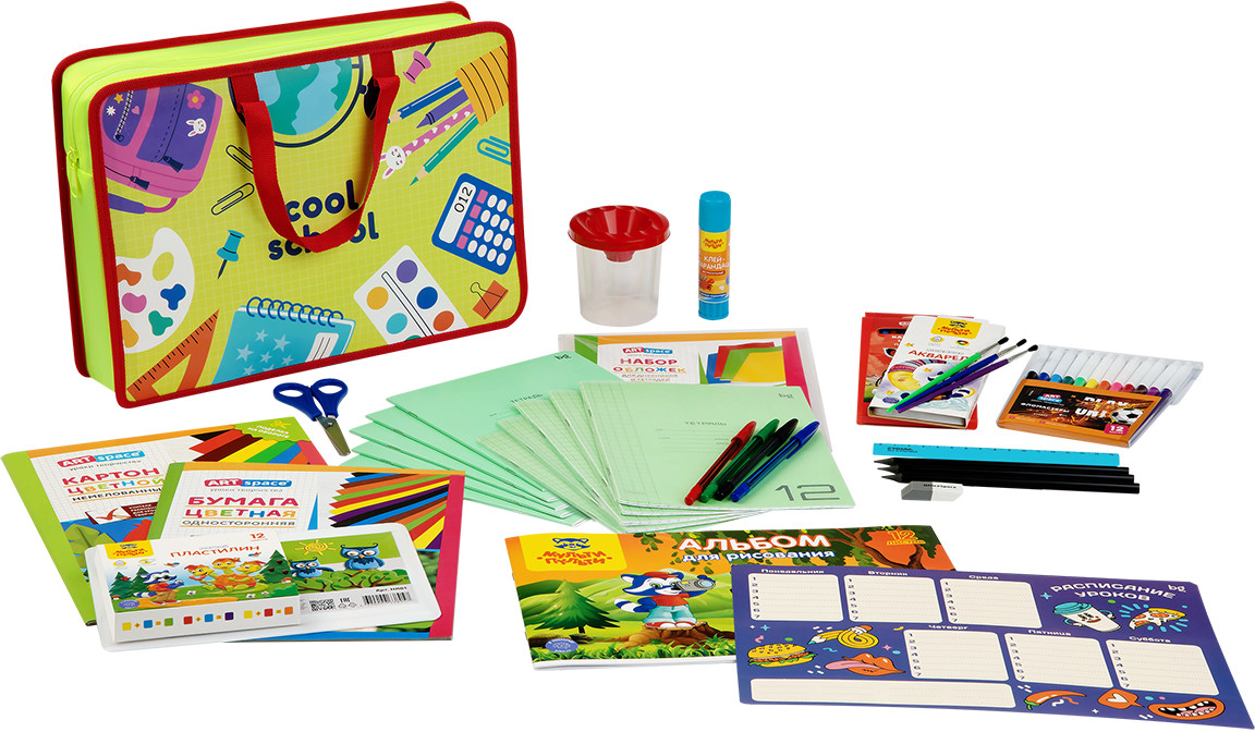 Набор первоклассника ArtSpace, универсальный, в папке-сумке, 45 предметов. Содержит все самые необходимые канцелярские принадлежности для школьника в первые дни занятий. Набор является традиционным подарком первокласснику или выпускнику детского сада. С набором ArtSpace дети могут создавать ещё больше шедевров и развиваться, играя. Формат изделия — А4.