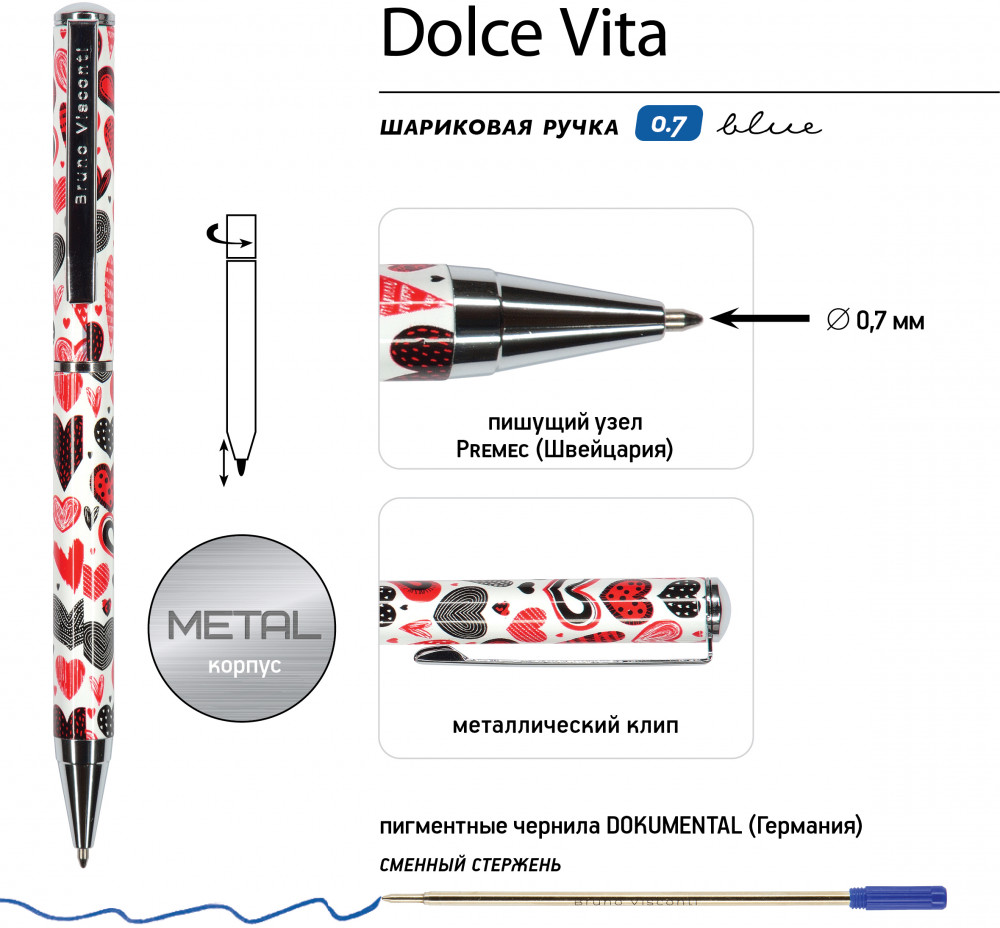 Bruno Visconti Ручка шариковая автоматическая «Сердечки. Фантазия»-20% +15