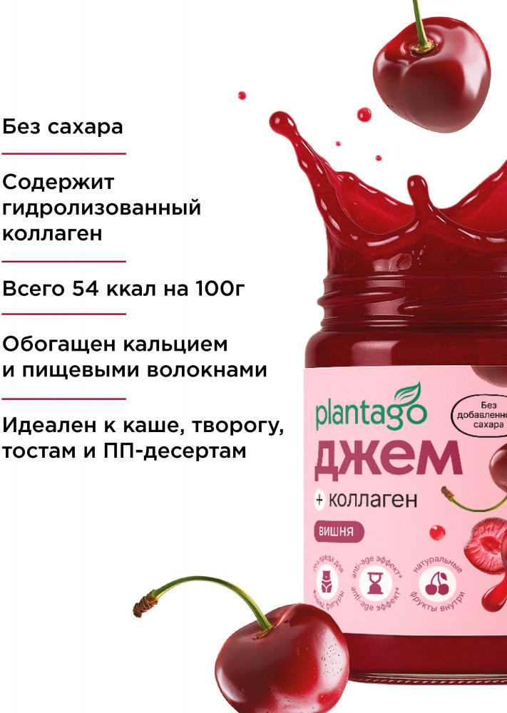 Plantago Джем низкокалорийный с коллагеном «Вишня»-30% +38