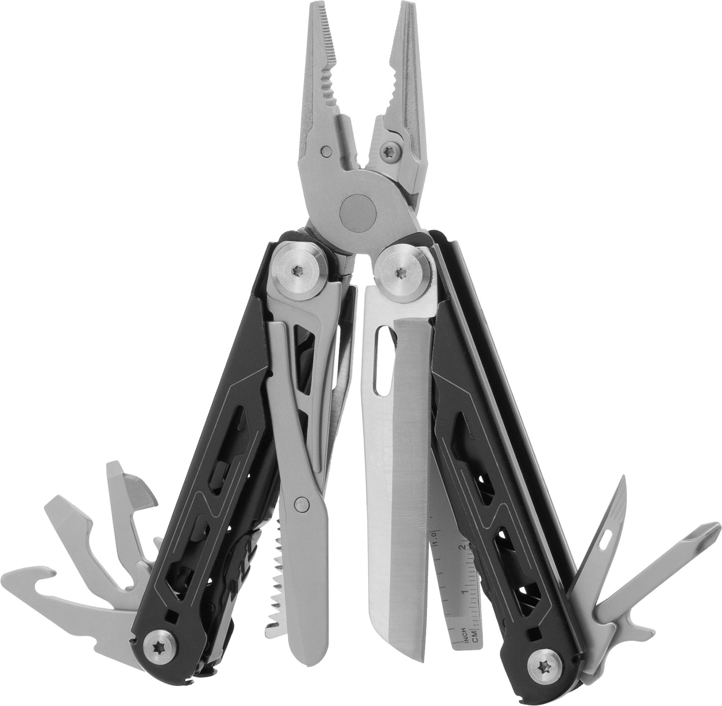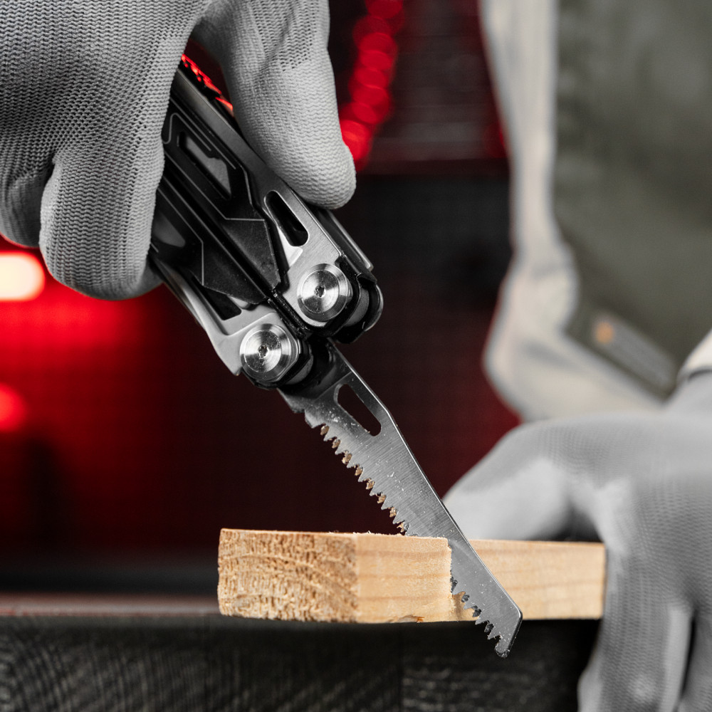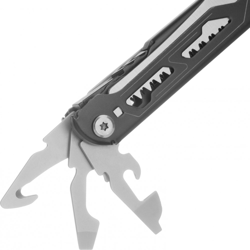 • удобное хранение и транспортировка — мультитул поставляется в прочном нейлоновом чехле, который можно закрепить на ремне. |