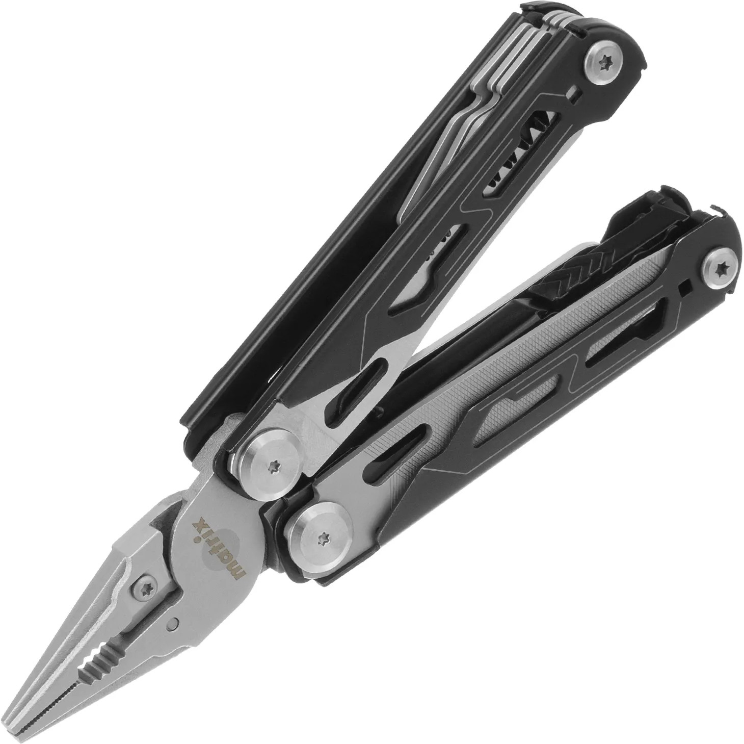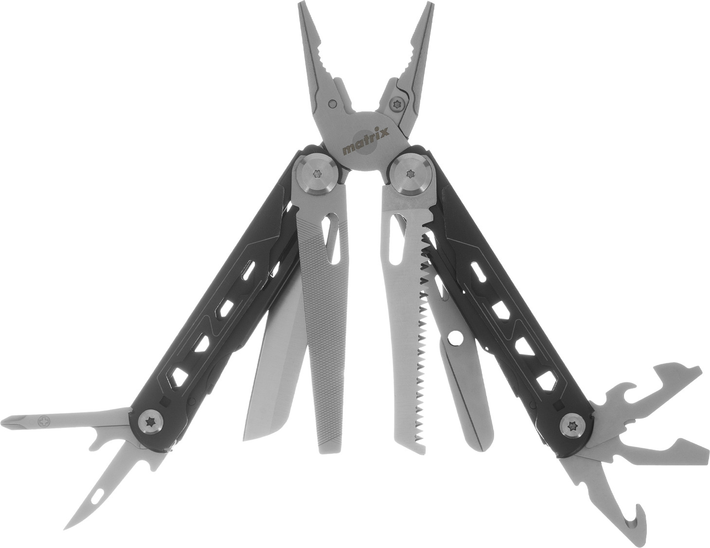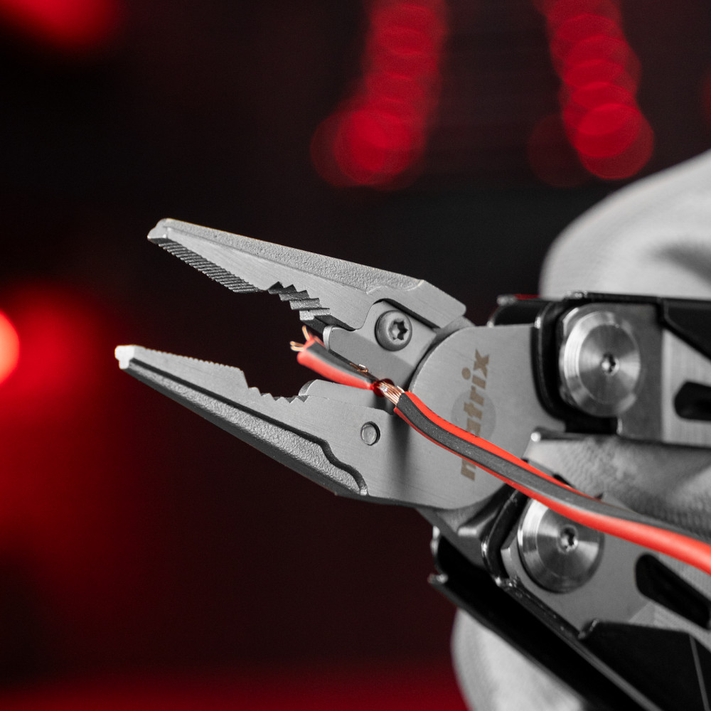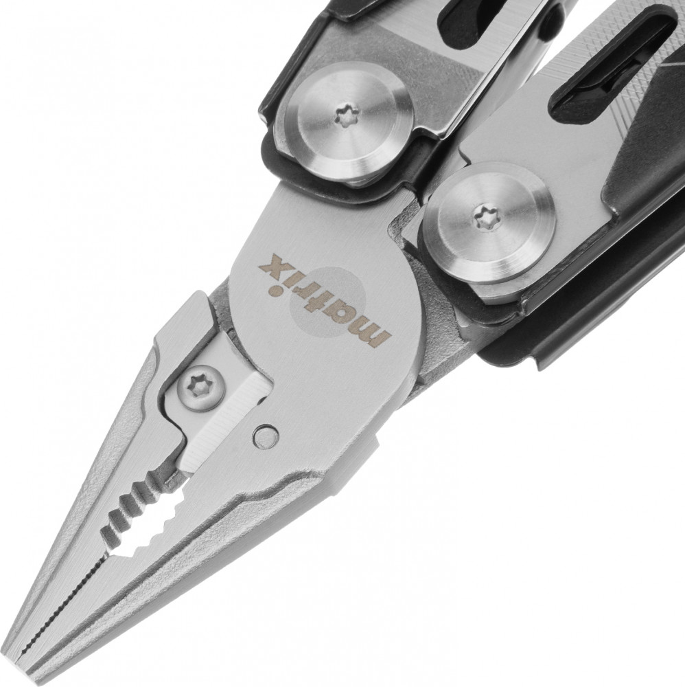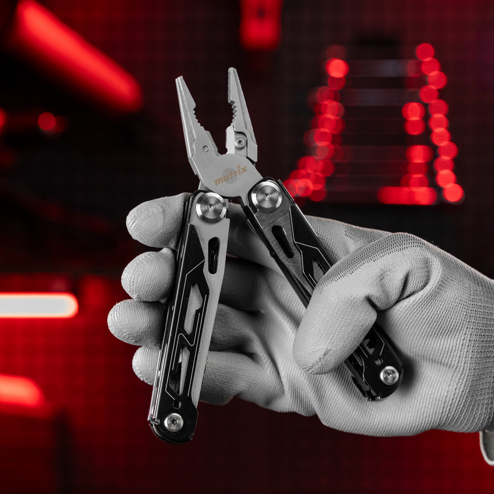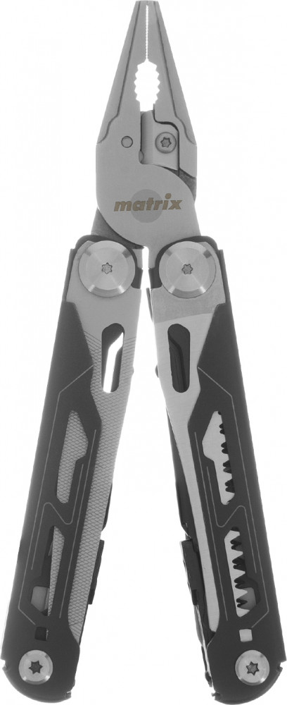 Трансформер (мультитул) Matrix 17627 длиной 160 мм, с авторазжимом, способен выполнять 15 функций. Подходит для выполнения несложных слесарно-монтажных работ, будет полезен дома, на даче, в походе, на рыбалке, также пригодится автолюбителям. Корпус изготовлен из прочной нержавеющей стали, поэтому инструмент прослужит долго.