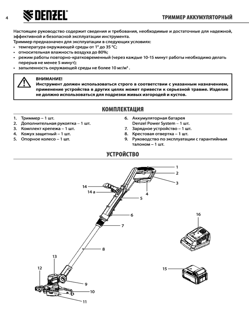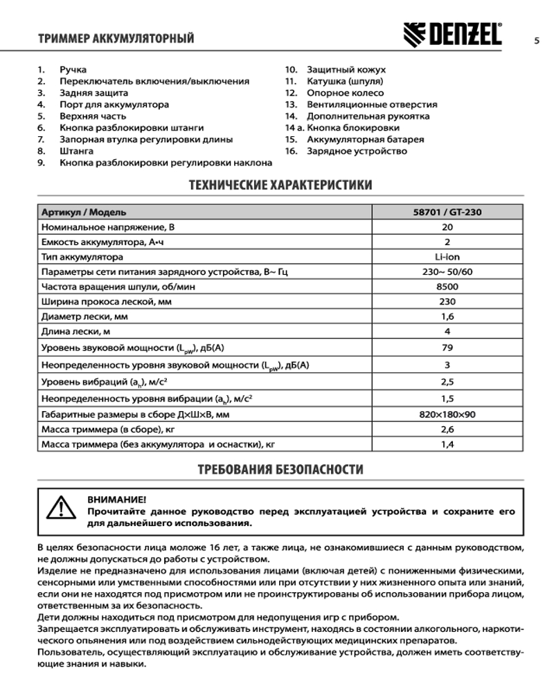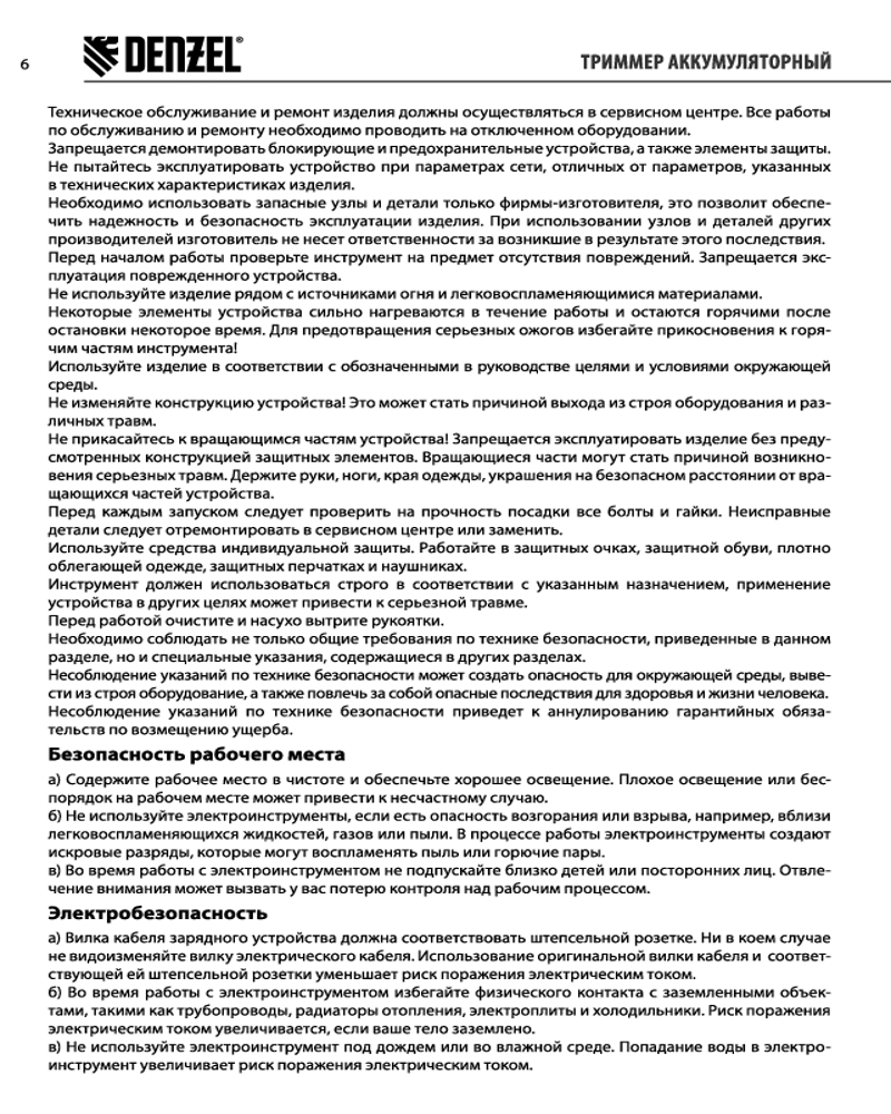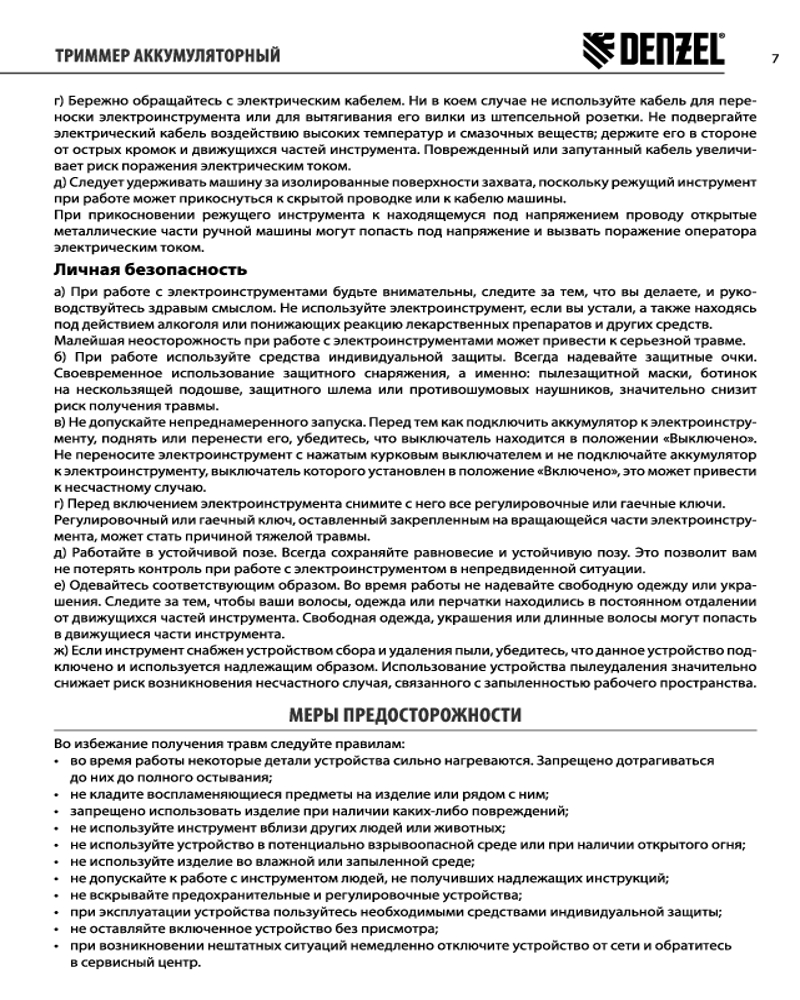 Denzel Триммер аккумуляторный GT-230-20% +988