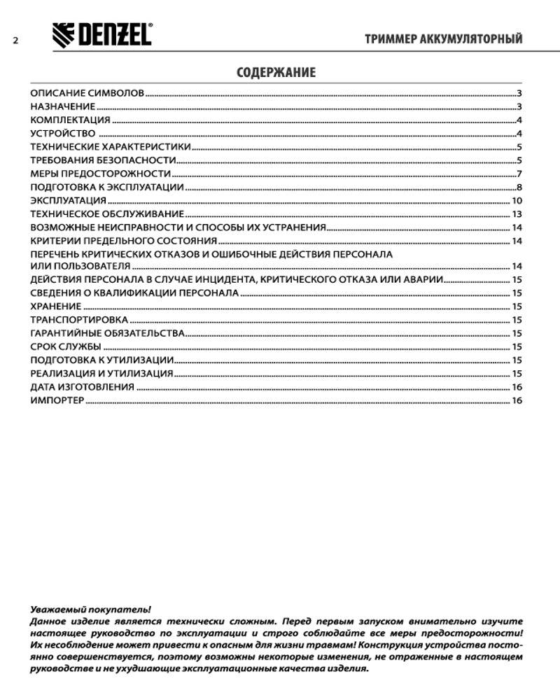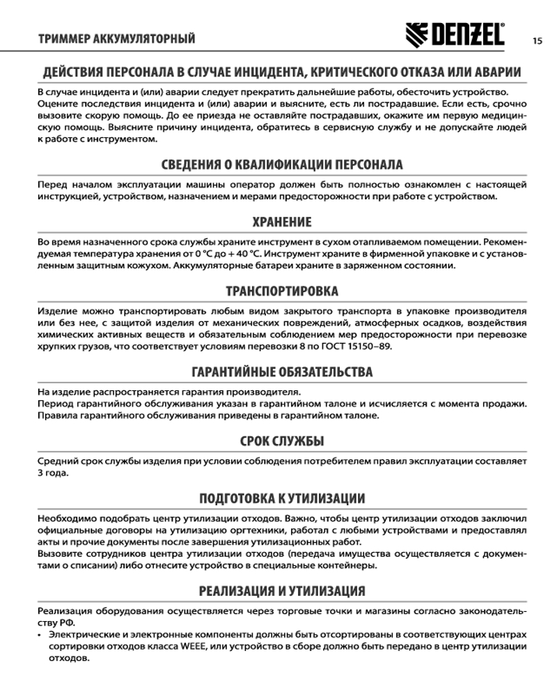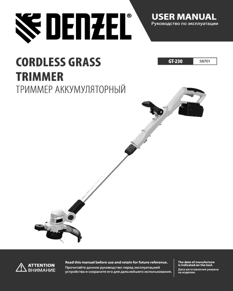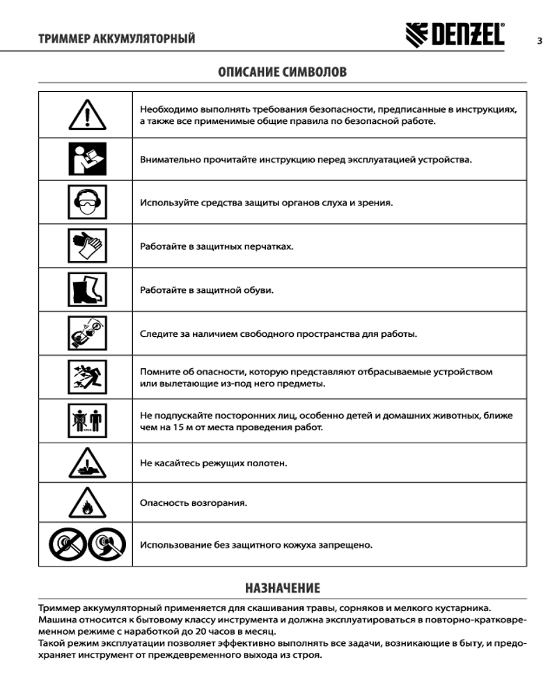Denzel Триммер аккумуляторный GT-230-20% +988