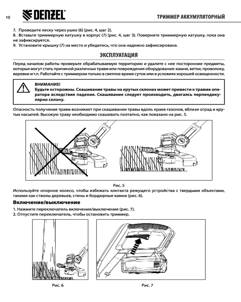 💳 Оплатить за товар можно при получении 🇰🇿 Есть бесплатная доставка по Казахстану от 1 дня 🎁 Копите бонусы с каждой покупки Аккумуляторный триммер Denzel GT-230 58701 предназначен для скашивания травы и сорняков, ширина скашивания составляет 230 мм. Работает от аккумулятора Li-Ion 20 В (универсальная платформа Denzel Power System), благодаря собственному автономному источнику питания позволяет свободно перемещаться по участку. Аккумулятор Li-Ion без эффекта памяти допускает подзарядку без потери емкости, обеспечивает стабильную работу в течение длительного времени. Триммер предназначен для бытового использования, будет полезен владельцам дачных участков. |