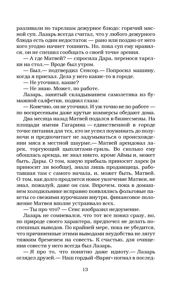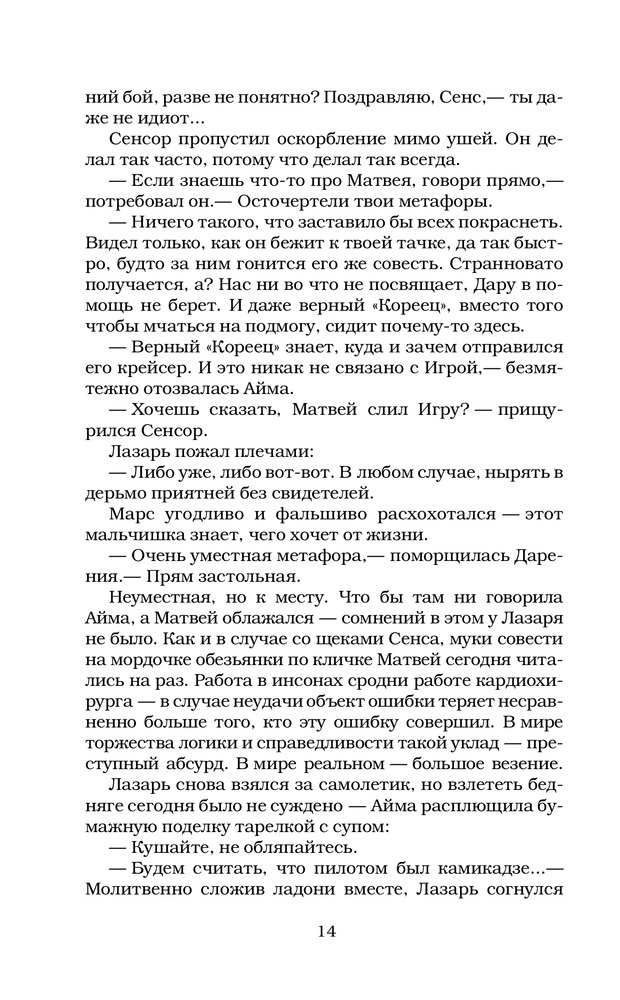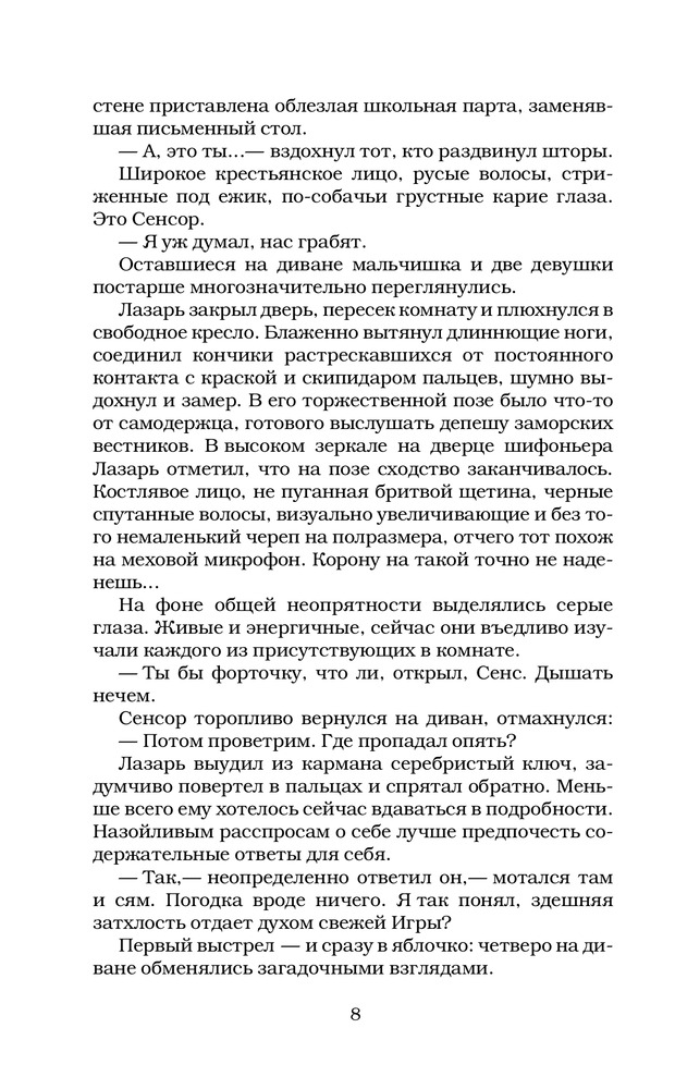 "Игра Лазаря" - интересная книга о четырех историях, происходящих в инсонах разных людей, переплетенных между собой невидимой нитью, которая видна лишь к концовке. Книга очень понравилась умеренным количеством юмора, остроумности (особенно в первой половине), сносками на современное мультимедийное искусство (в частности на любимую музыку и кино). Проработаны персонажи, которые стали для меня родными за время чтения. Книга выполнена в отличном дизайне и за смешные деньги, хорошо сидит в руках. Свободное время проведено с пользой. По слухам автор собирается написать продолжение, буду ждать.