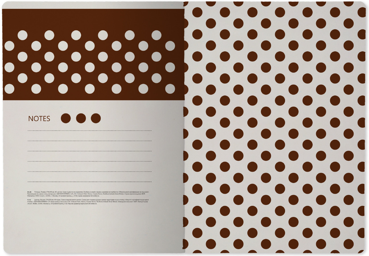 Bruno Visconti Тетрадь общая «Brown polkadot»В данный момент этот товар отсутствует в продаже. Возможно, у нас найдется аналогичный или похожий товар здесь. Общая тетрадь — универсальный вариант для записей, заметок и учёбы. Подходит для школьников, студентов и офисных работников. Удобный формат и качественная бумага обеспечивают комфорт в использовании и аккуратный внешний вид записей. |