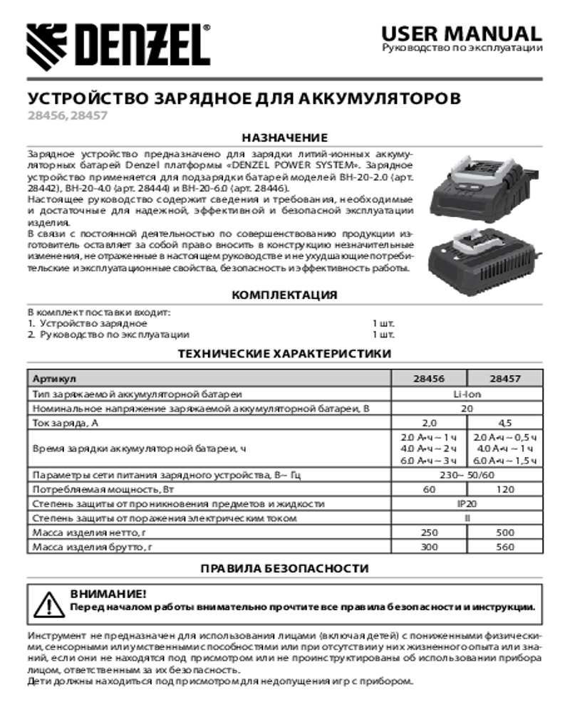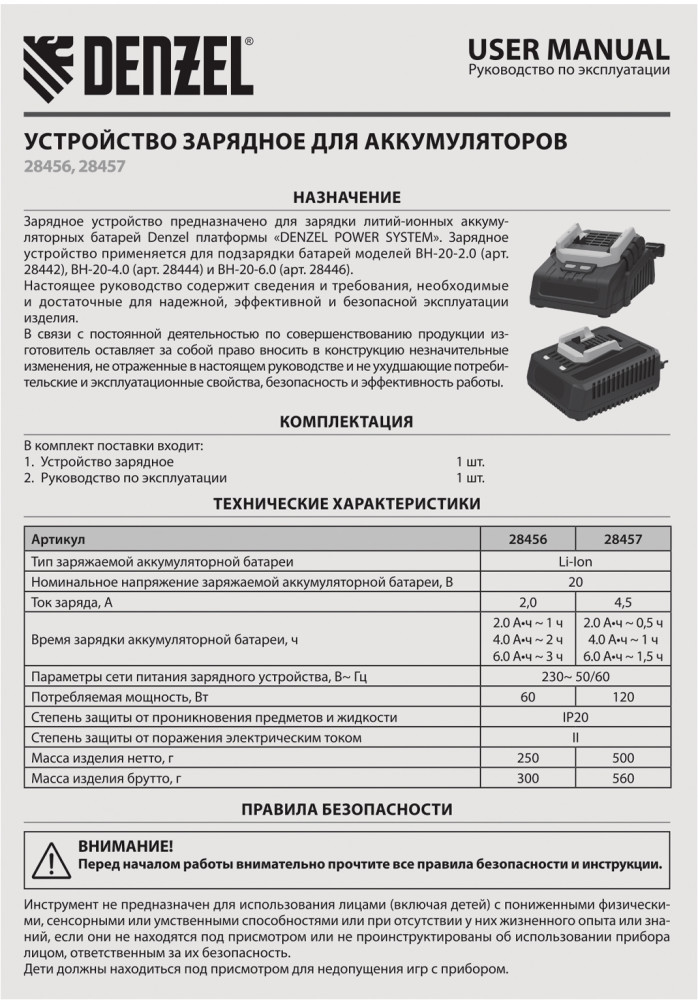 💳 Оплатить за товар можно при получении 🇰🇿 Есть бесплатная доставка по Казахстану от 1 дня 🎁 Копите бонусы с каждой покупки Зарядное устройство Denzel BCH-20-2.0 28456 поддерживает ток заряда 2,0 A и предназначено для восстановления работоспособности аккумуляторов Denzel Li-Ion 20 В (артикулы 28442, 28444 и 28446). Обеспечивает быструю и полную зарядку, что позволяет избежать длительных перерывов в работе с аккумуляторным инструментом. |