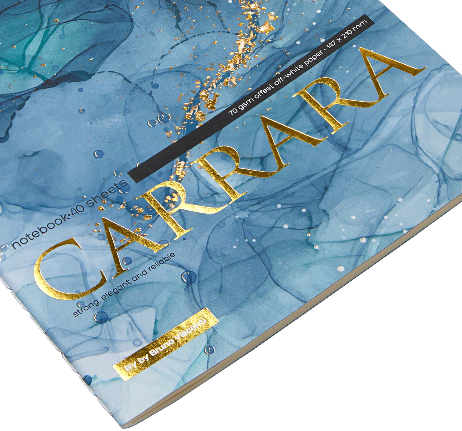 Серия: Carrara Тетрадь формата А5 «Carrara.Bright» ТМ Bruno Visconti для ведения учебных, рабочих и личных записей. Актуальный авторский дизайн и высокое качество ламинации обложки матовой пленкой SoftTouch — характерная особенность тетрадей ТМ Bruno Visconti. Еще одна важная особенность — вторая обложка тетради, содержащая элементы основного дизайна и линовку для подписи тетради. Плотный мелованный картон 190 г/кв.м надежно предохраняет тетрадь от повреждений. Блок из 40 листов бежевой офсетной бумаги плотностью 70 г/кв.м прекрасно подходит для использования чернил любого качества. Линовка блока в линейку позволяет вести аккуратные записи. Тетрадь сшита декоративной нитью. Это обеспечивает прекрасное скрепление блока и обложки. |