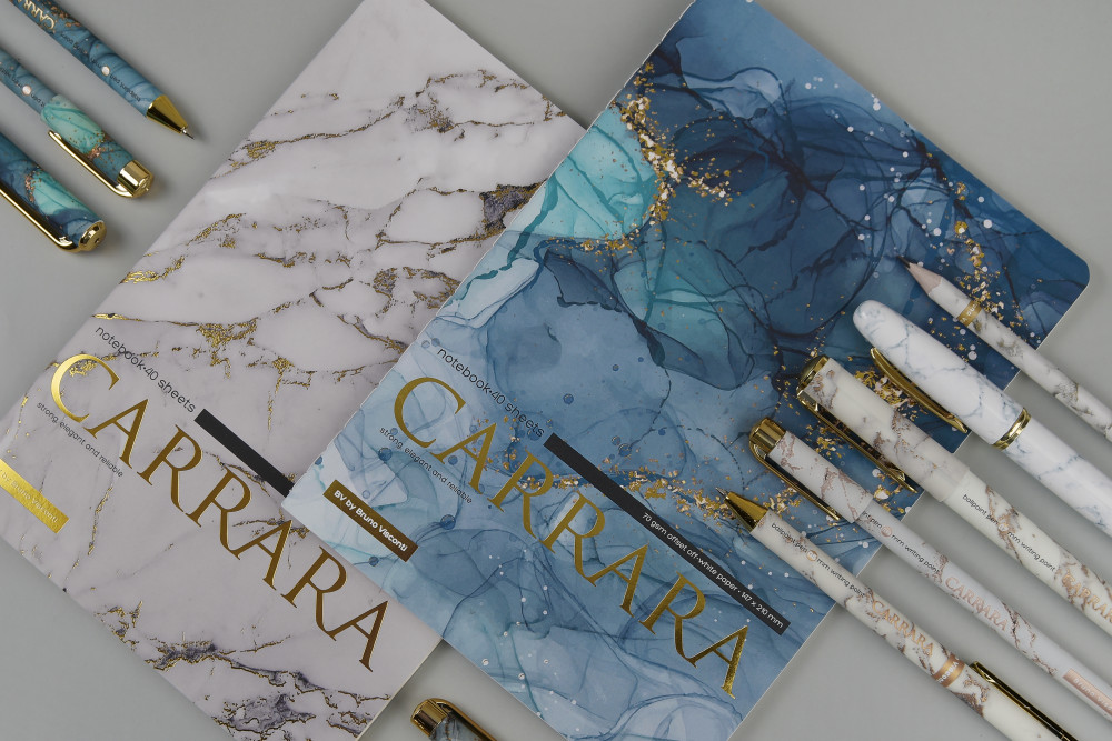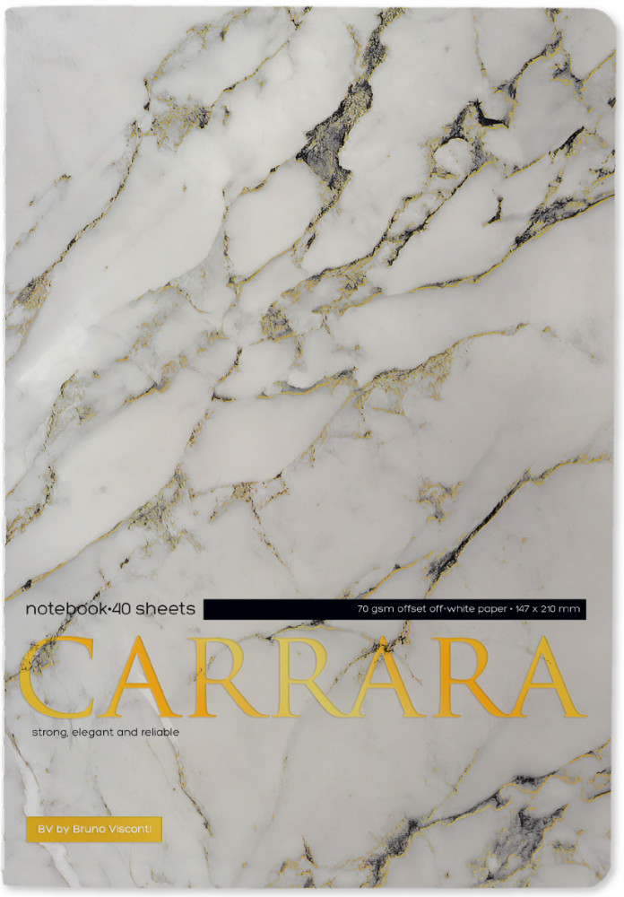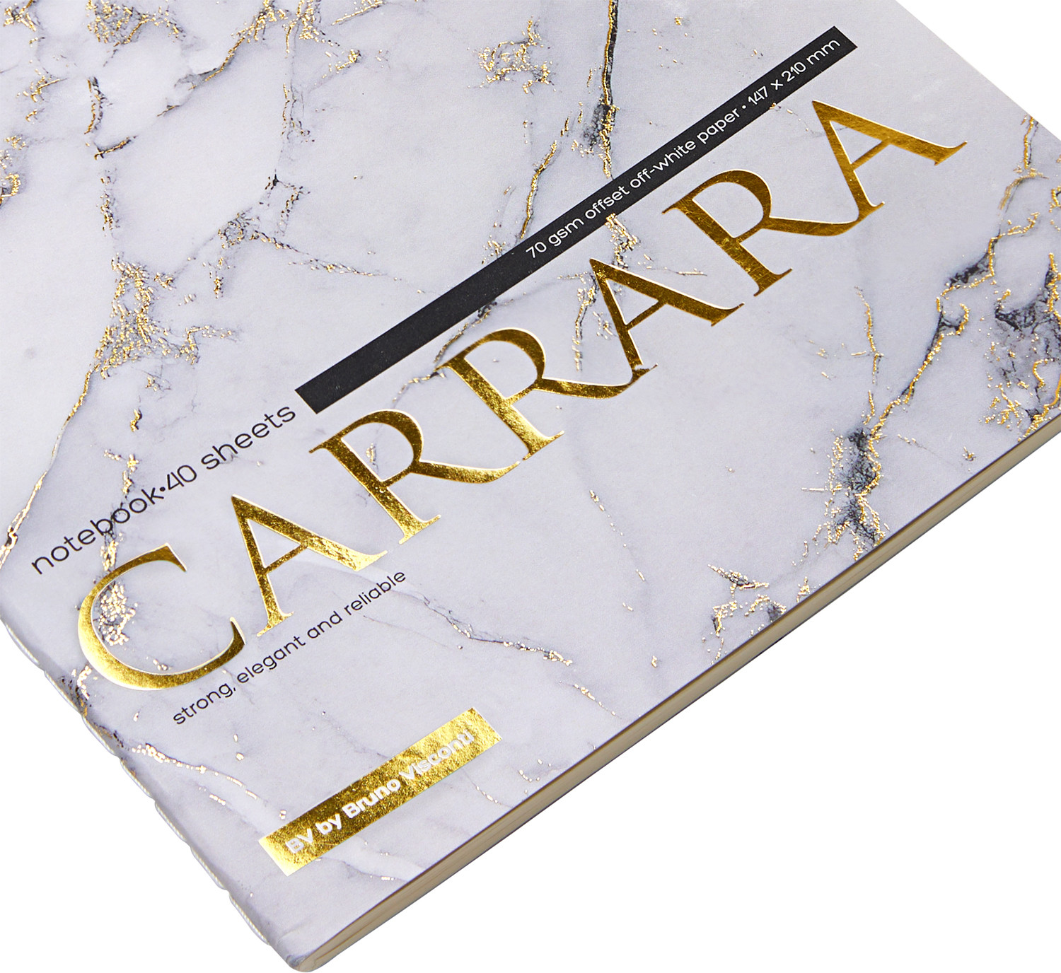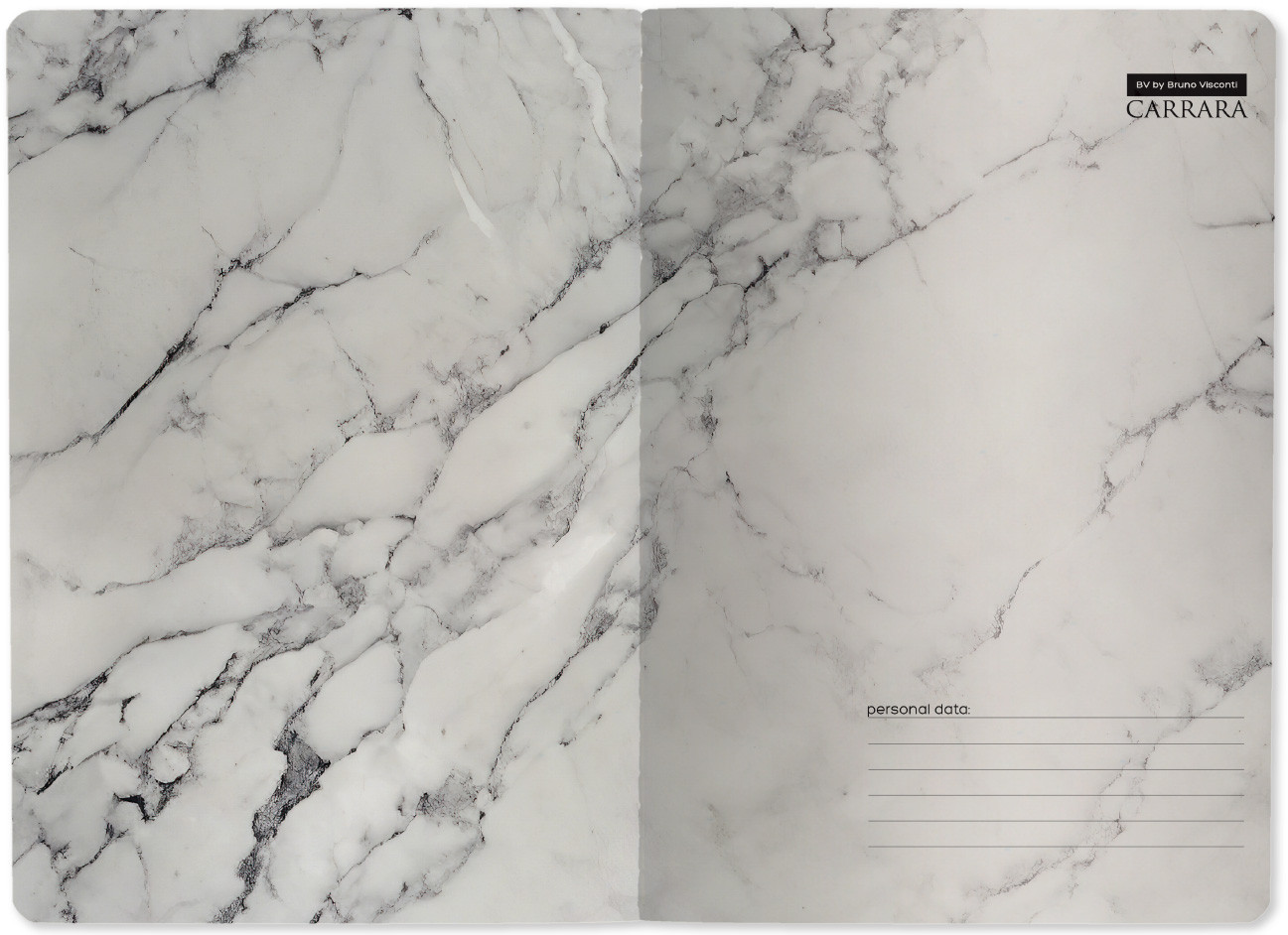 Серия: Carrara Тетрадь формата А5 «Carrara» ТМ Bruno Visconti для ведения учебных, рабочих и личных записей. Актуальный авторский дизайн и высокое качество ламинации обложки матовой пленкой SoftTouch — характерная особенность тетрадей ТМ Bruno Visconti. Еще одна важная особенность — вторая обложка тетради, содержащая элементы основного дизайна и линовку для подписи тетради. Плотный мелованный картон 190 г/кв.м надежно предохраняет тетрадь от повреждений. Блок из 40 листов бежевой офсетной бумаги плотностью 70 г/кв.м прекрасно подходит для использования чернил любого качества. Линовка блока в линейку позволяет вести аккуратные записи. Тетрадь сшита декоративной нитью. Это обеспечивает прекрасное скрепление блока и обложки. |