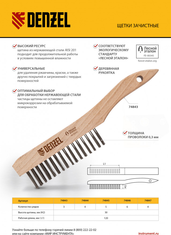 Denzel Щетка зачистная трехрядная-20% +49
