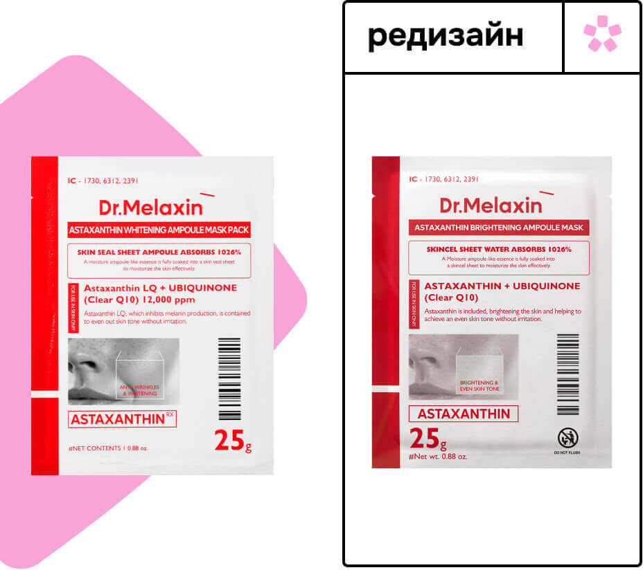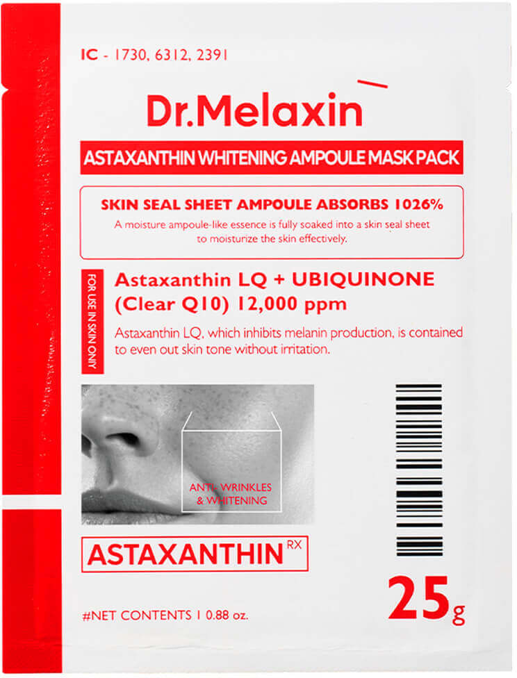 Dr. Melaxin Маска тканевая для лица осветляющая с астаксантином «Whitening Ampoule Mask Pack»