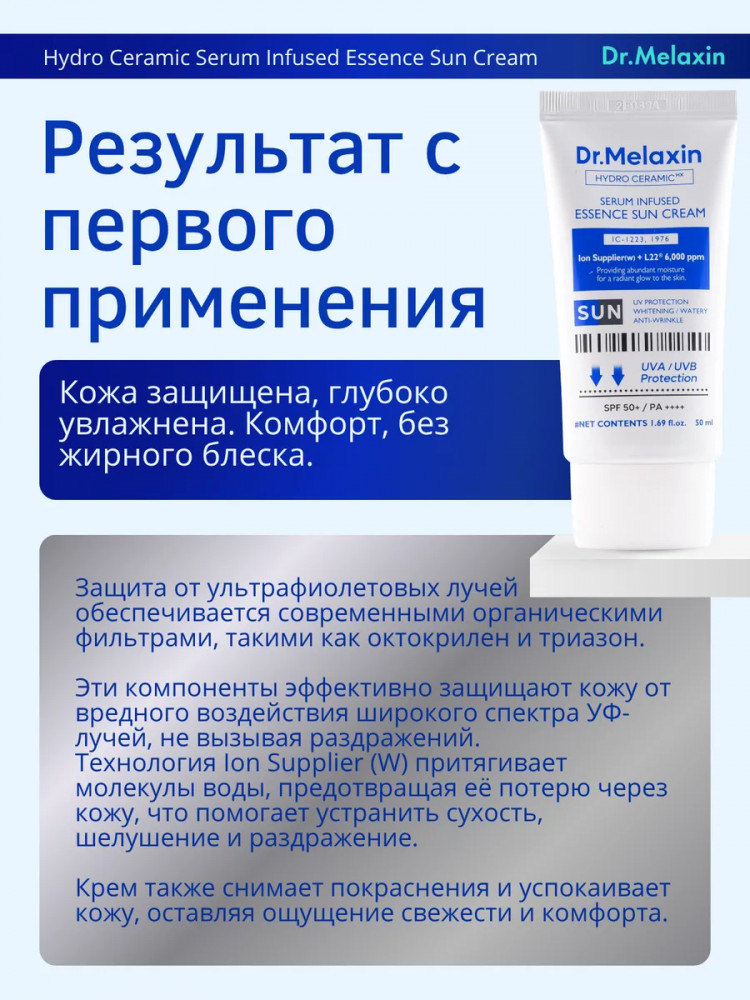 Dr. Melaxin Крем для лица солнцезащитный «Serum Infused Essence Sun Cream» SPF50+ PP++++-20% +56