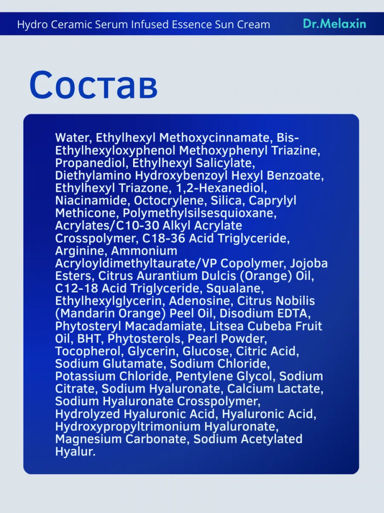 💳 Оплатить за товар можно при получении 🇰🇿 Есть бесплатная доставка по Казахстану от 1 дня 🎁 Копите бонусы с каждой покупки Серия: Hydro Ceramic Солнцезащитный крем для лица Dr.Melaxin Hydro Ceramic Serum Infused Essence Sun Cream сочетает в себе мощную SPF-защиту и свойства увлажняющей сыворотки. Формула построена на комбинации физических и химических фильтров — диоксида титана и Polysilicone-15, которые надёжно защищают кожу от UVA- и UVB-лучей. Базу крема составляют компоненты с уходовыми функциями: ниацинамид осветляет и выравнивает тон, аденозин повышает упругость, а масла жожоба, кокоса и сквалан питают и защищают кожу от обезвоживания. Крем обладает шелковистой текстурой, легко распределяется по коже, придаёт ей мягкое сияние и визуально выравнивает поверхность благодаря перламутровой пудре. Подходит для ежедневного использования, в том числе в качестве основы под макияж. |