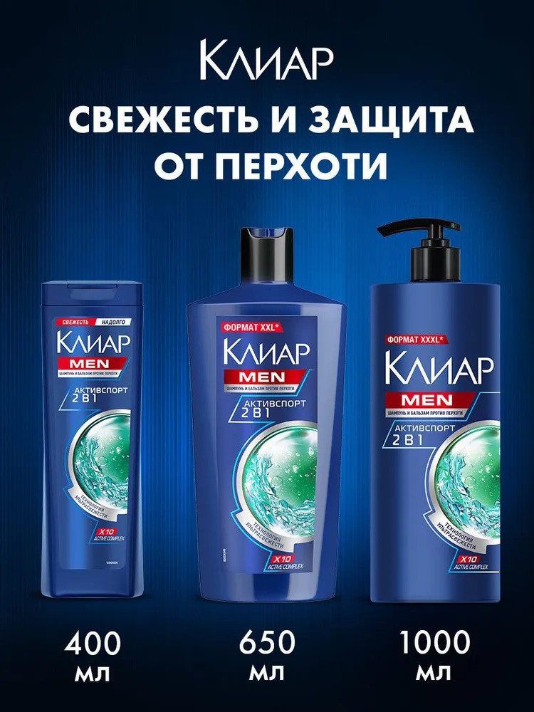 Clear vita ABE Шампунь-бальзам мужской против перхоти с ментолом «Активспорт»