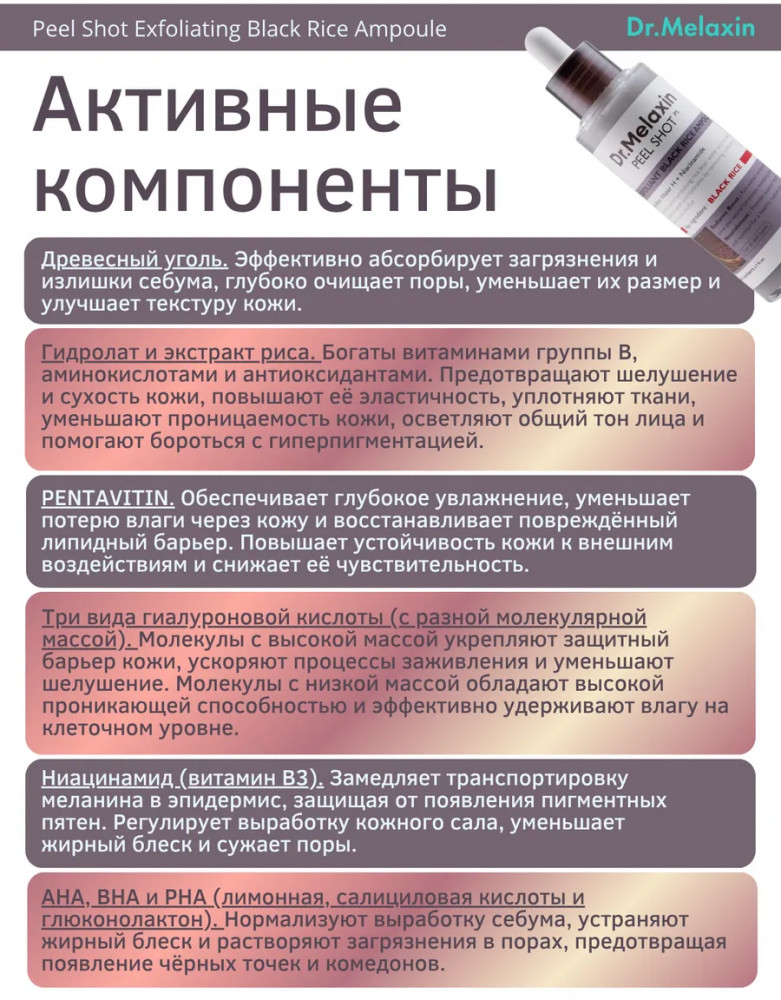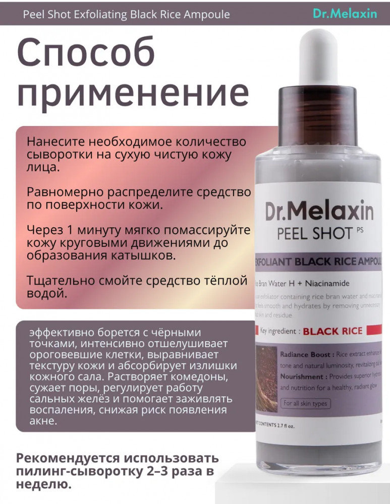 Dr. Melaxin Сыворотка для лица с экстрактом черного риса «Exfoliating Black Rice Ampoule»