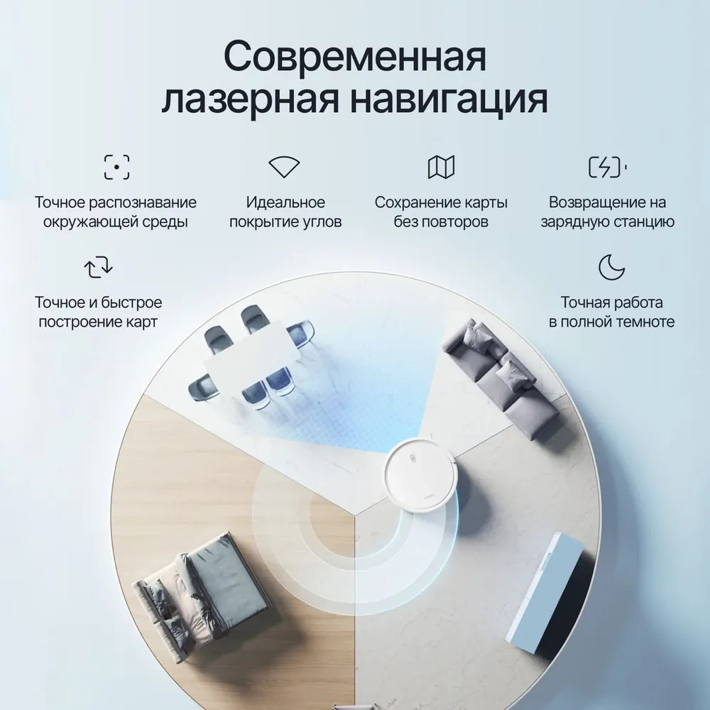 • компактный размер: благодаря своим компактным размерам робот-пылесос может свободно перемещаться под большинством препятствий, таких как шкафы, диваны и кровати для очистки в труднодоступных местах.